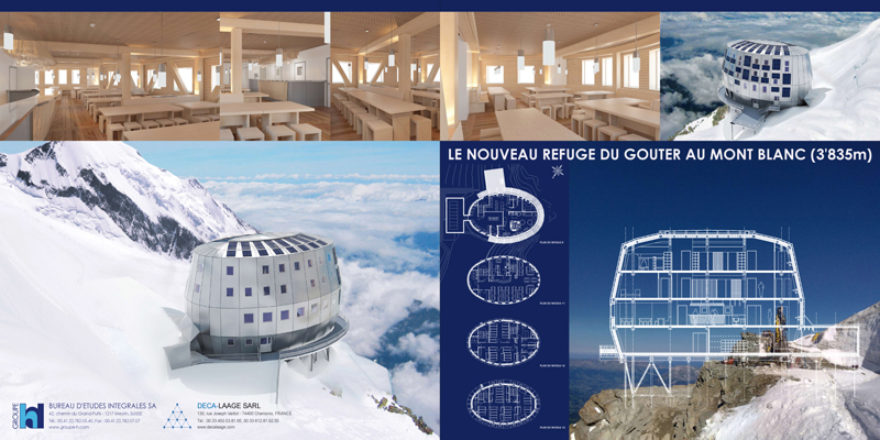 L’apertura del rifugio è prevista, se le condizioni meteorologiche lo consentiranno, per giugno 2012. Le immagini del progetto e del luogo in cui verra realizzato il rifugio del Gouter:
