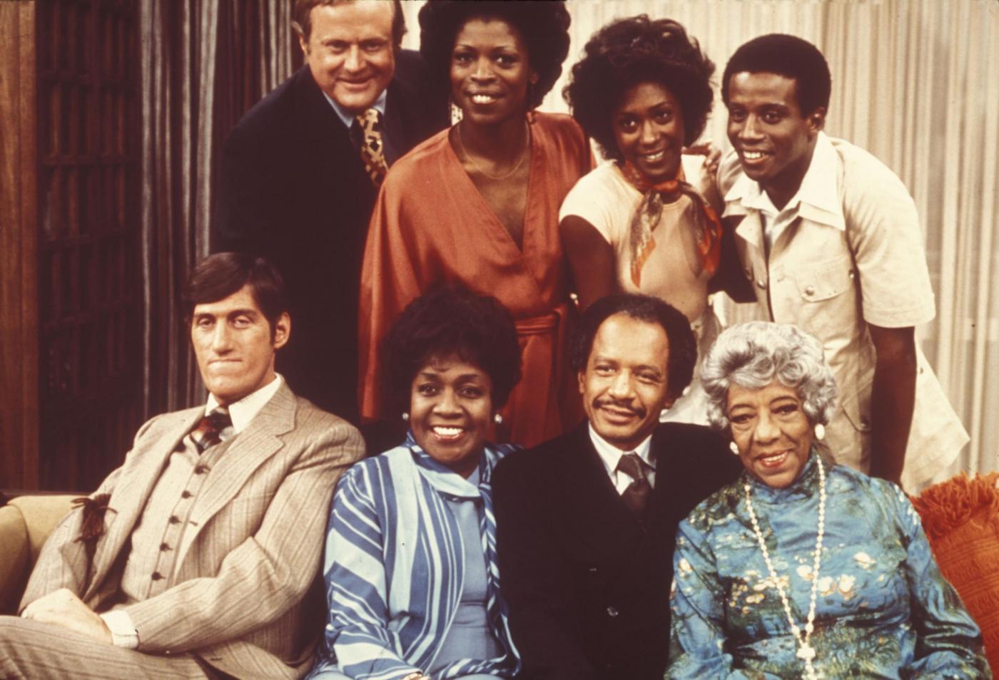 "The Jeffersons" (1975) (front Row) Paul Benedit, Isabel Sanford, Sherman Hemsley and Sara Cully, (Back Row) Franklin Cover, Roxie Roker, Berlinda Tolbert and Mike Evans. Photo Credit: Shooting Star Archives_Shooting Star™