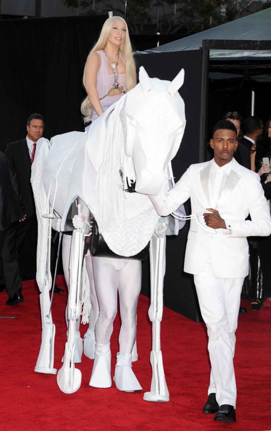LOS ANGELES – Prima di trasformarsi in Marilyn Monroe per uno show “presidenziale” con R.Kelly, Lady Gaga arriva sul red carpet dei 41esimi American Music Awards di Los Angeles, in groppa a un cavallo bianco.