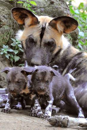 I genitori sono Okla e Chiaro, una giovane coppia di licaoni molto affiatata, spiegano i responsabili del Bioparco capitolino, Okla ha 3 anni e mezzo, è nata allo Zoo di Duisburg (Germania) ed è arrivata a Roma nel 2012. Il padre, giunto nel 2011, si chiama Chiaro ed è nato nel 2006 allo zoo di Schwering (Germania).
