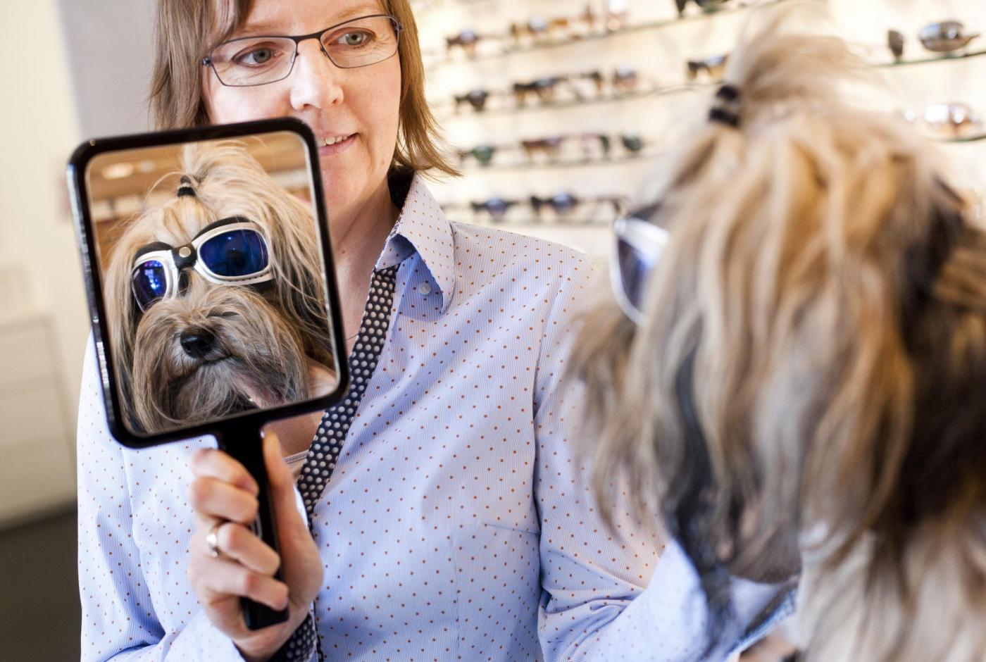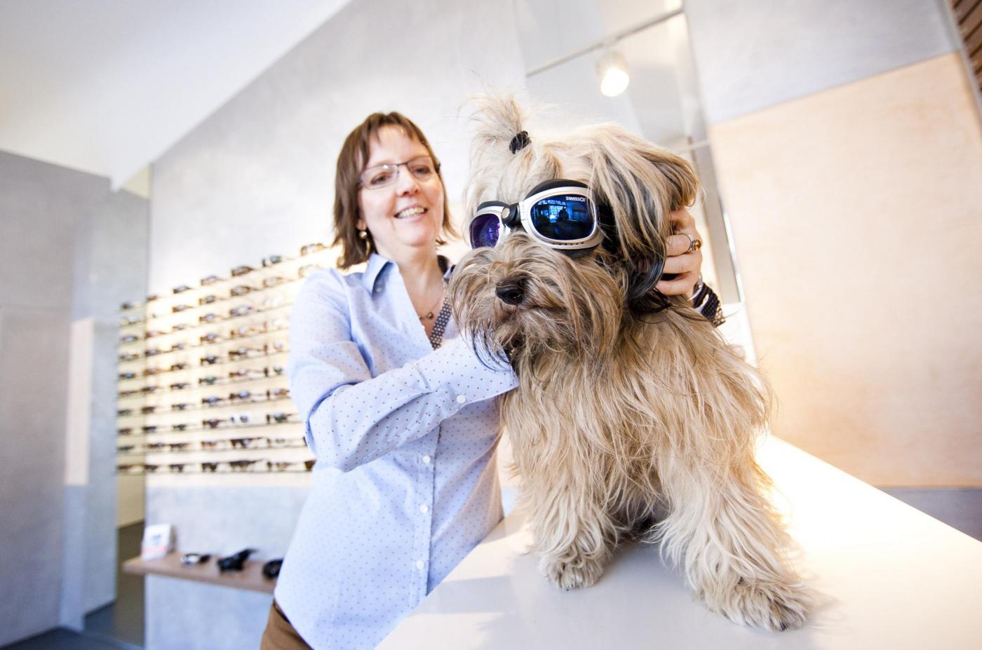BERLINO – L’ottica Sehwerk di Berlino si sta specializzando nella cura degli occhi dei cani che soffrono problemi con il sole e con il vento o che abbiano problemi più seri come cecità e ipovisione. L’ottica ha progettato un paio di occhiali di plastica flessibile disponibili in vari colori e disegni tra cui il rosa e il verde militare.