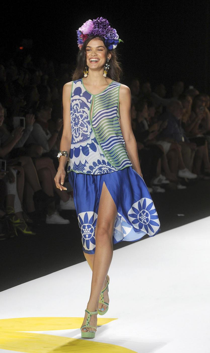 NEW YORK – Desigual ha presentato la nuova collezione Primavera/Estate 2015, “Say Something Nice“, alla New York Fashion Week questa settimana. Coloratissimi e originali come sempre, i capi firmati dal marchio spagnolo hanno portato una ventata di freschezza nella Grande Mela. Testimonial d’eccezione la supermodella brasiliana Adriana Lima, che ha sfilato in passerella lanciando baci e mostrandosi estremamente divertita. Presenti anche altre vip come Olivia Palermo e Rosario Dawson.
