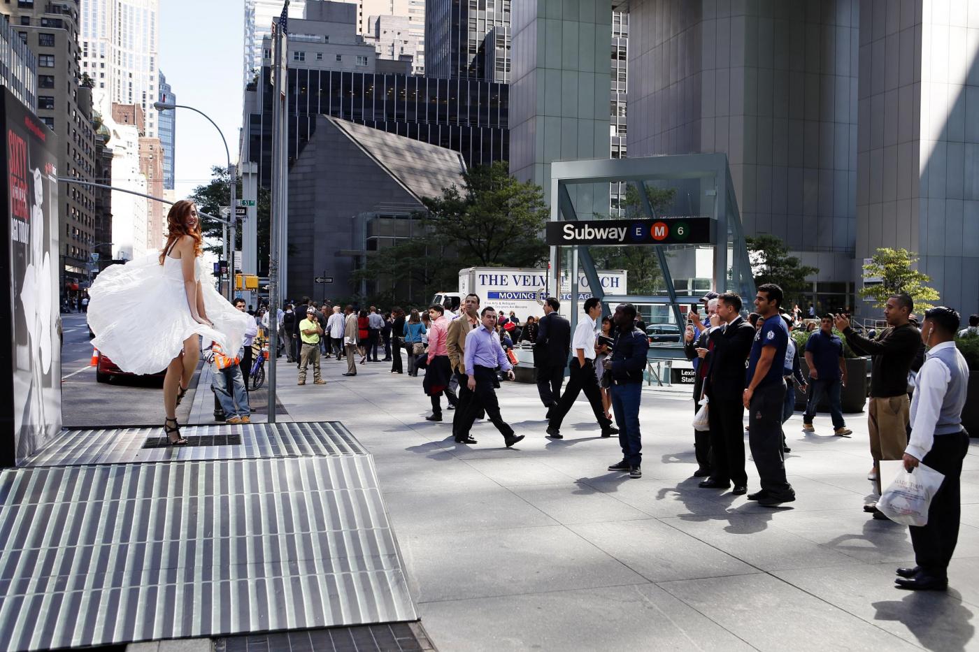 La gonna bianca di Marilyn viene sollevata dallo spostamento d’aria provocato dal passaggio della metropolitana di New York. Sessant’anni dopo un celebre marchio americano di prodotti per capelli ha celebrato l’anniversario invitando i fan dell’attrice a ripetere la scena sulla Lexington Avenue, più o meno lo stesso luogo che si trova nei pressi di luoghi simbolo della Gran de Mela come Union Square, Columbus Circle e Grand Central Station.