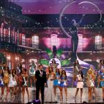 Hosts Thomas Roberts, center left, and Giuliana Rancic, center right, introduce the contestants for the Miss USA pageant in Baton Rouge, La., Sunday, June 8, 2014. (AP Photo/Jonathan Bachman)