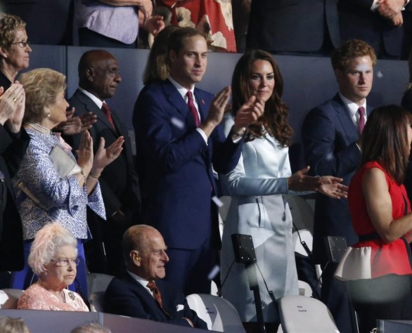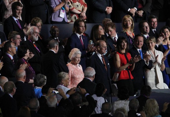 LONDRA – Sangue blu ma non solo alla cerimonia d’inaugurazione che ieri sera ha aperto le Olimpiadi di Londra 2012 all’Olympic Park. Ecco dunque la Regina Elisabetta II (foto: infophoto), che si è prestata anche a un delizioso spot insieme a James Bond (al secolo, Daniel Craig), con il consorte Filippo Duca di Edimburgo. Al loro fianco, la sorella Anna, il nipote William con la moglie Kate Middleton. E ancora: il principe Harry, la principessa ereditaria di Danimarca Mary, Charlene di Monaco.