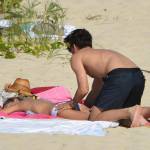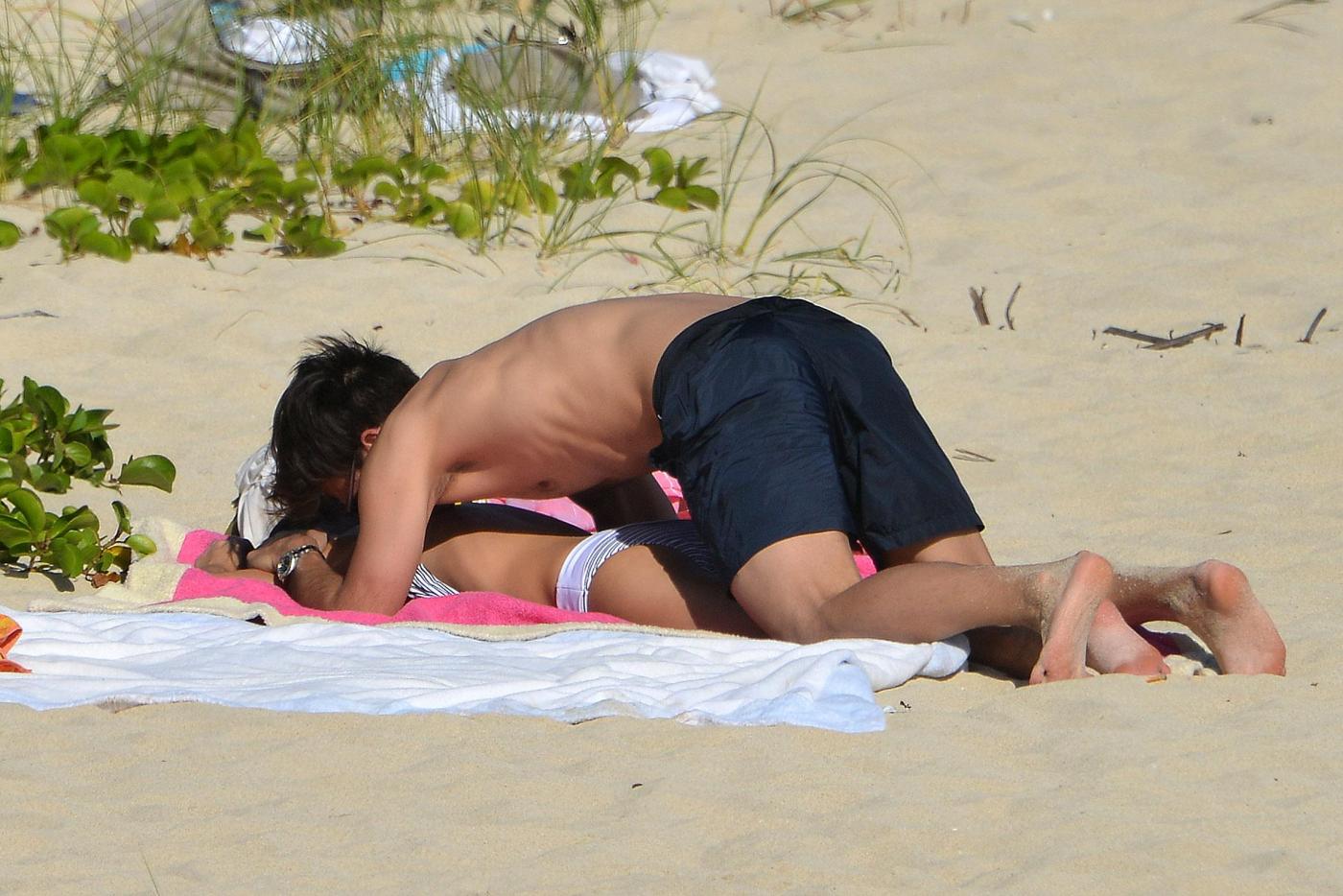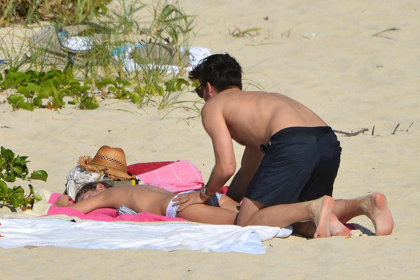 Si tratta di una delle coppie più glamour del momento: lei, è una trend setter di 27 anni originaria di New York. Lui invece, un modello tedesco noto per aver sfilato per marchi come Mango e Hogan. La coppia, malgrado l’obbiettivo del fotografo, in spiaggia non risparmia baci e coccole (foto LaPresse)