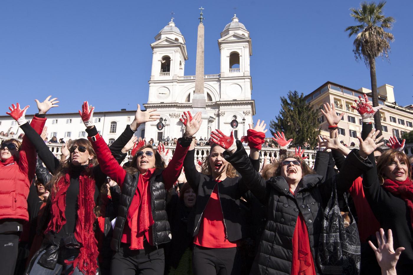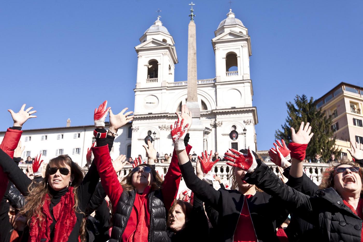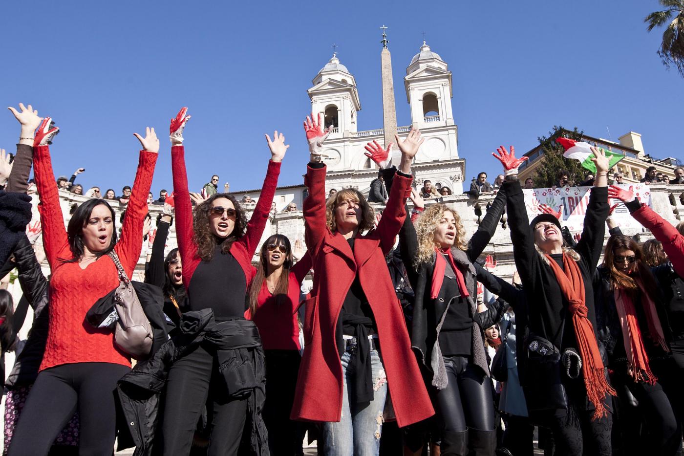 I flash mob si sono svolti anche in Italia. Nelle foto che seguono, Trinità de Monti a Roma invasa da decine di donne (foto LaPresse)