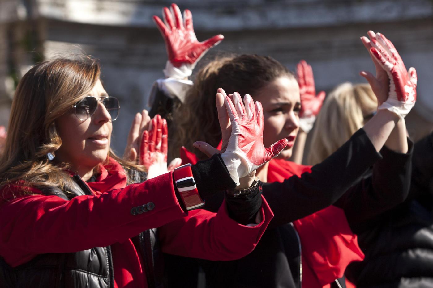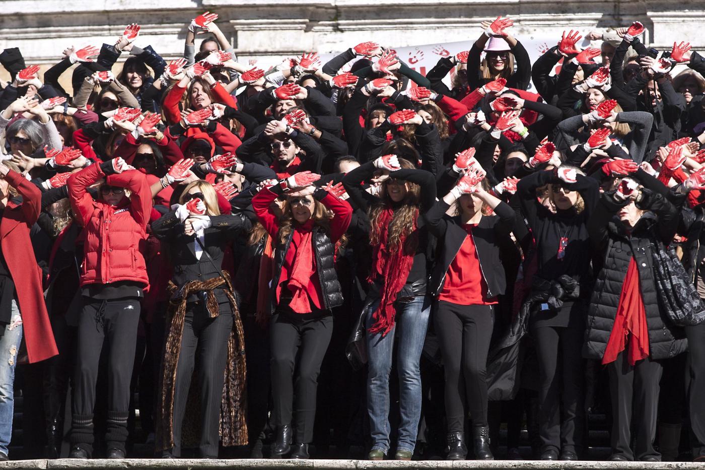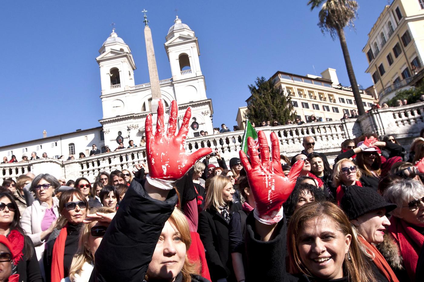 I flash mob si sono svolti anche in Italia. Nelle foto che seguono, Trinità de Monti a Roma invasa da decine di donne (foto LaPresse)
