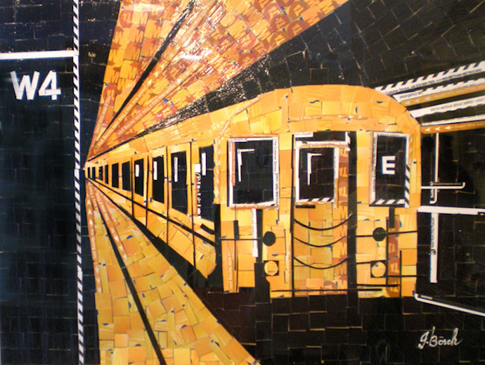 NEW YORK – Incredibilmente bella e allo stesso tempo insolita , un’idea realizzata dall’artista newyorkese Nina Boesh. Per 10 anni, ha raccolto i biglietti della metropolitana, che hanno costituito la base per una serie di collages dedicati a New York. Nei suoi dipinti sono raffigurati i principali “segni distintivi” di New York, come ad esempio la Statua della Libertà, il famoso taxi giallo, i vagoni della metropolitana, così come ritratti di celebrità americane.