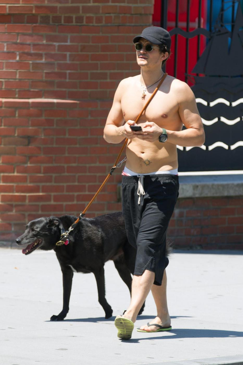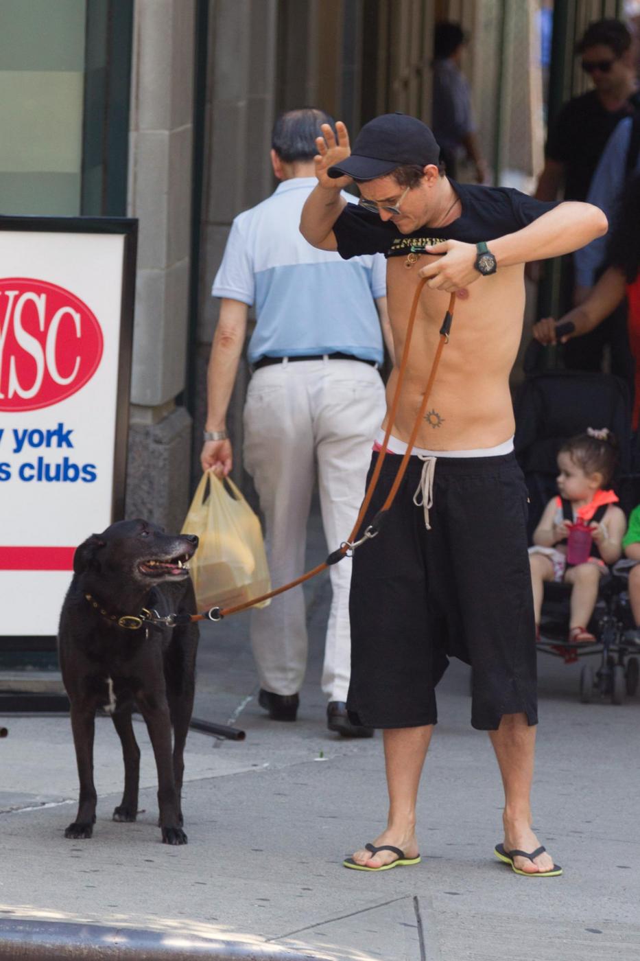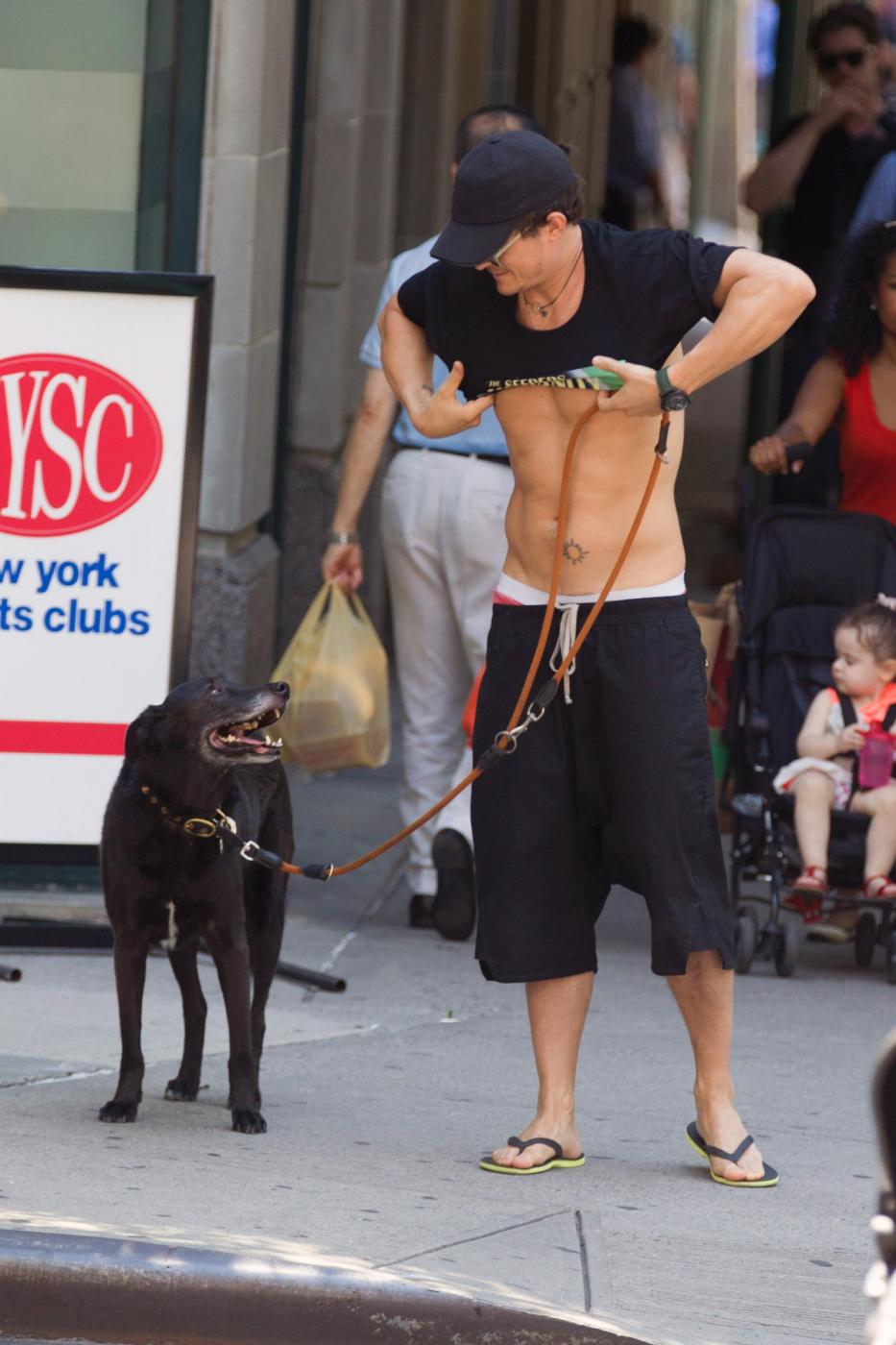 July 16, 2013: Orlando Bloom pictured today going out shirtless with her son Flynn Bloom in New York City.Pictured Here: Orlando Bloom.Mandatory Credit: Elder Ordonez/INFphoto.com Ref: infusny-160 |sp| Lapresse