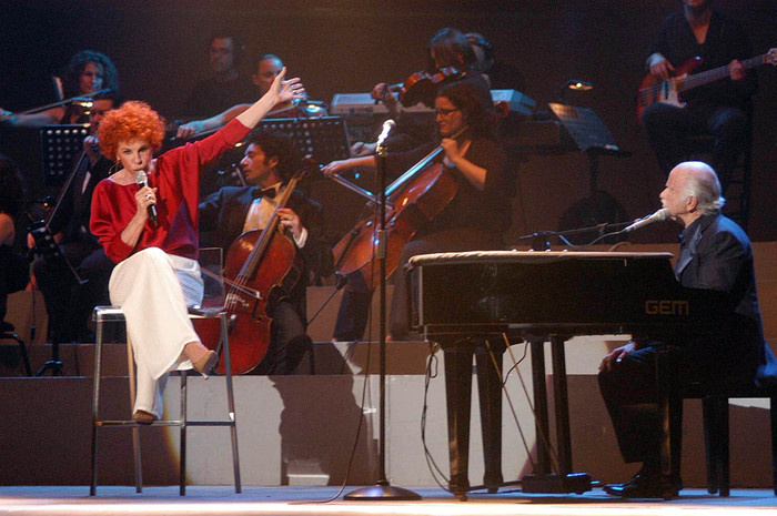 20060520 VENEZIA SPE - MUSICA - SHOW VANONI PAOLI " TI RICORDI? NO, NON MI RICORDO " Ornella Vanoni e Gino Paoli insieme, ieri sera a Venezia, sul palco del Teatro La Fenice a concludere il loro tour italiano. Andrea MEROLA/ANSA DEF