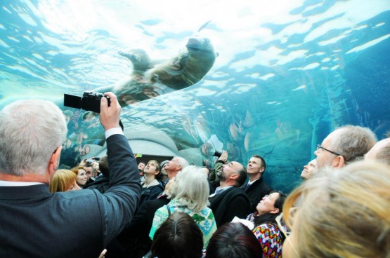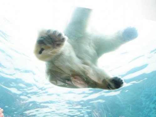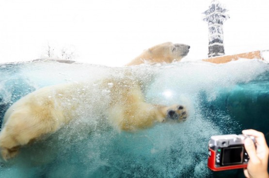 Sotto passa un tunnel di trasparente dove è possibile ammirare gli splendidi plantigradi mentre nuotano (LaPresse)
