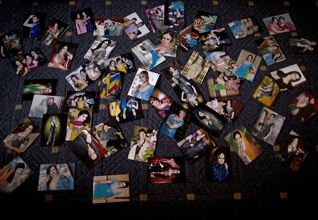Fotografie di persone transessuali, sparpagliate sul pavimento di un appartamento. La casa è abitata da una comunità di danzatori travestiti e transgender pachistani Pakistan, transgender sfidano la paura ballando alle feste di nozze07