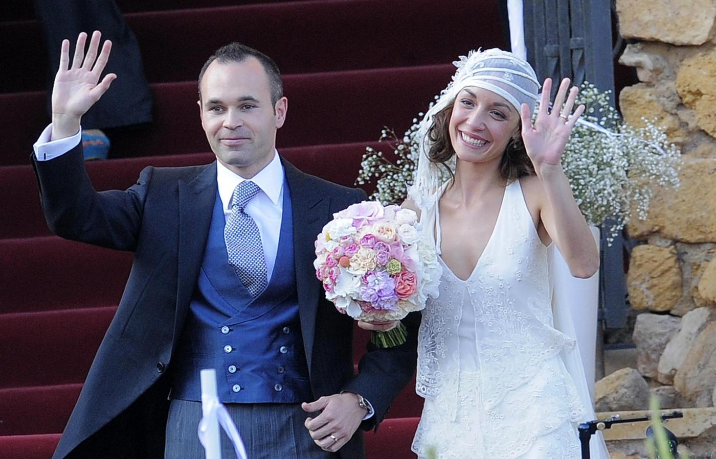 Andres Iniesta e Anna OrtizFoto LaPresse gossip08 07 2012 Castello di Tamarit - Tarragona SpagnaCastello di Tamarit , Andres Iniesta e Anna Ortiz Sposi Nella Foto Andres Iniesta, Anna OrtizFC Barcelona's Andres Iniesta kisses his wife Anna Ortiz during his wedding at the castle of Tamarit in Tarragona, Spain, Sunday, July 8, 2012