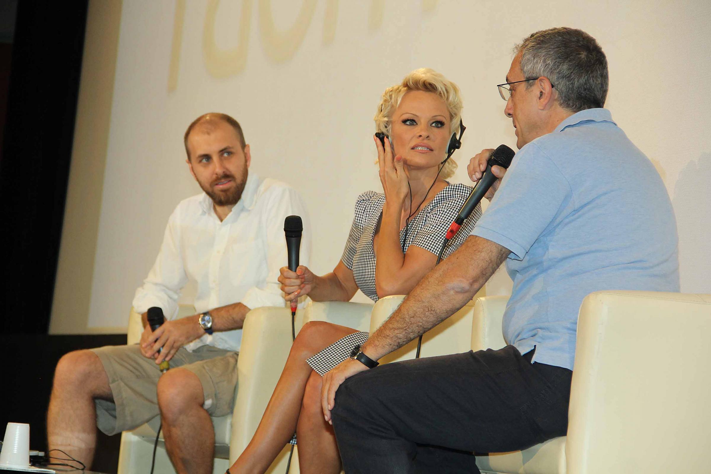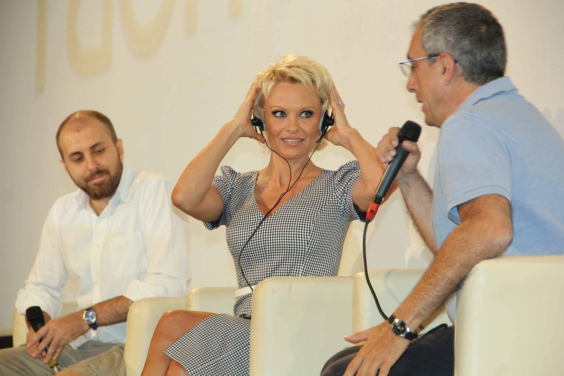Vestita con un abito semplice turchese, ad ogni domanda non ha fatto mai mancare un gridolino di sorpresa come una novella Marilyn Monroe. Poi, alla fine, alla domanda giusta, replica: ”Le tette? Si lo confesso mi hanno aiutato le porto sempre con me”. L’ex bagnina della serie tv Baywatch, diventata famosa in tutto il mondo e che all’ultimo festival di Cannes ha confessato di aver subito violenze, da bambina e poi da adolescente, parla del suo impegno sociale rivolto appunto contro la violenza alle donne, in difesa degli animali e dell’ambiente: “Ho messo su una fondazione in difesa di queste cose. A Cannes ho confessato cose molte intime di quello che mi è successo nell’infanzia (Anderson fu molestata da bambina, dalla sua baby sitter e poi ha subìto molte altre brutte avventure a sfondo sessuale ndr.) e credo che le cose per i bambini stiano anche peggiorando oggi”.