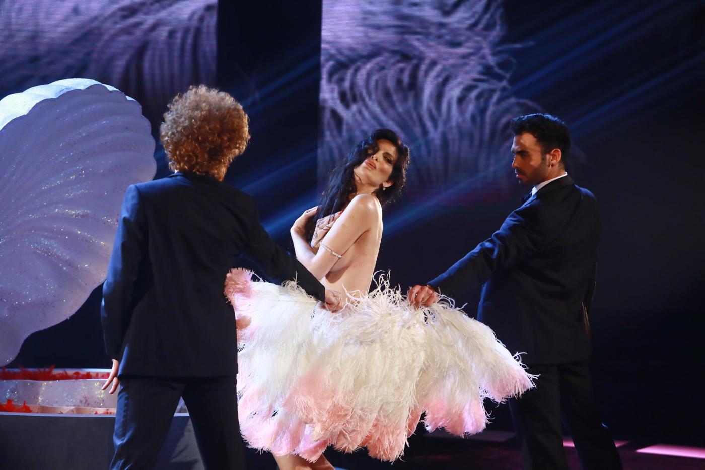La puntata ha mostrato anche un bel numero orientale di spade per Matilde Brandi e Juliana Moreira, il tappeto elastico per Sergio Friscia e Amaurys Perez, le acrobazie in aria a petto nudo per Simon Grechi e Tommaso Rinaldi, le prodezze con i palloni da basket per Mario Cipollini e Fiona May e le prove di illusionismo tra Costanza Caracciolo e Biagio Izzo. Quello che rimarrà impresso nella mente dei telespettatori più di tutto, è stata però la sfida a colpi di burlesque tra la Rodriguez e l’ex regina del Bagaglino, che ha offerto lato B mozzafiato. Anche perché la Prati, alla tenera età di 56 anni ha ancora un corpo da urlo (foto LaPresse).