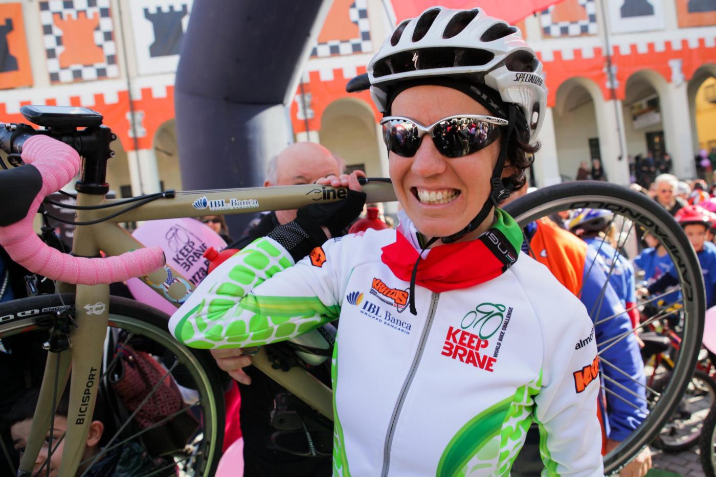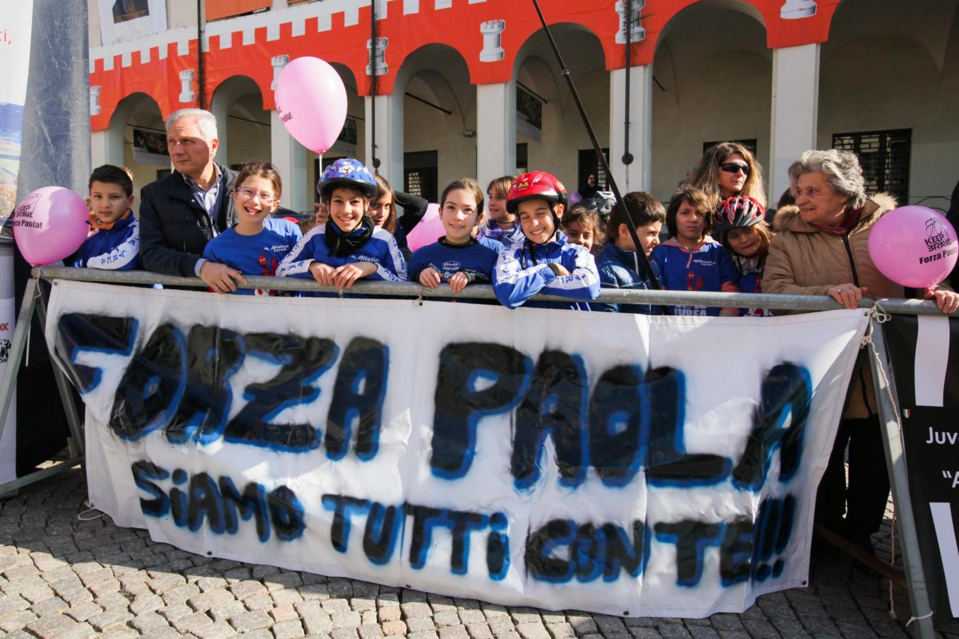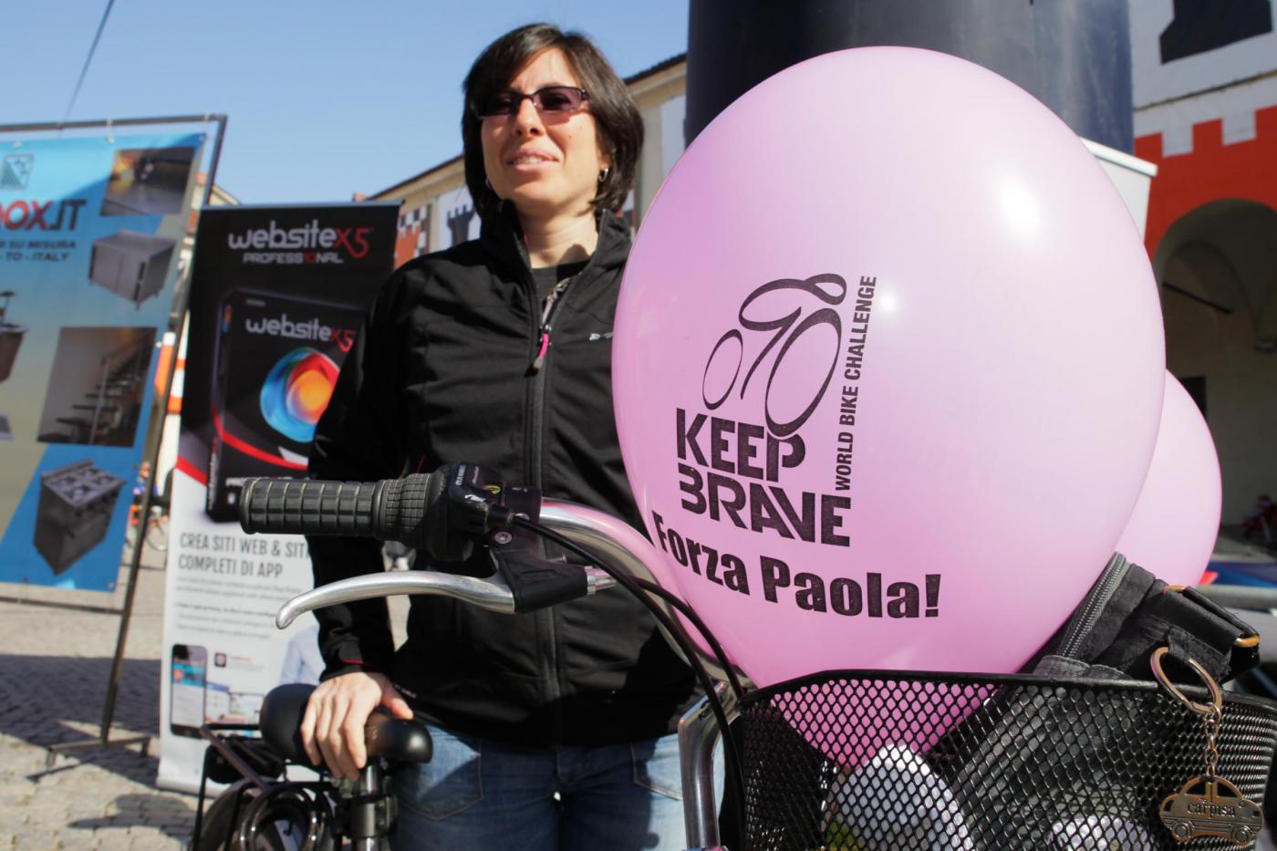 Foto Andrea Negro / LaPresse 08 03 2014 Ivrea (Italia) Ivrea, piazza gremita per la partenza di Paola Gianotti, che farà il giro del mondo in bicicletta Nella foto: i palloncini del keep braveFoto Andrea Negro / LaPresse 08 March 2014 Ivrea (Italy) Paola Gianotti, 32, leaving her home in Ivrea will attempt to replicate the success of Greek cyclist Juliana Bhuring, who cycled the same distance around the world in 145 days in 2012