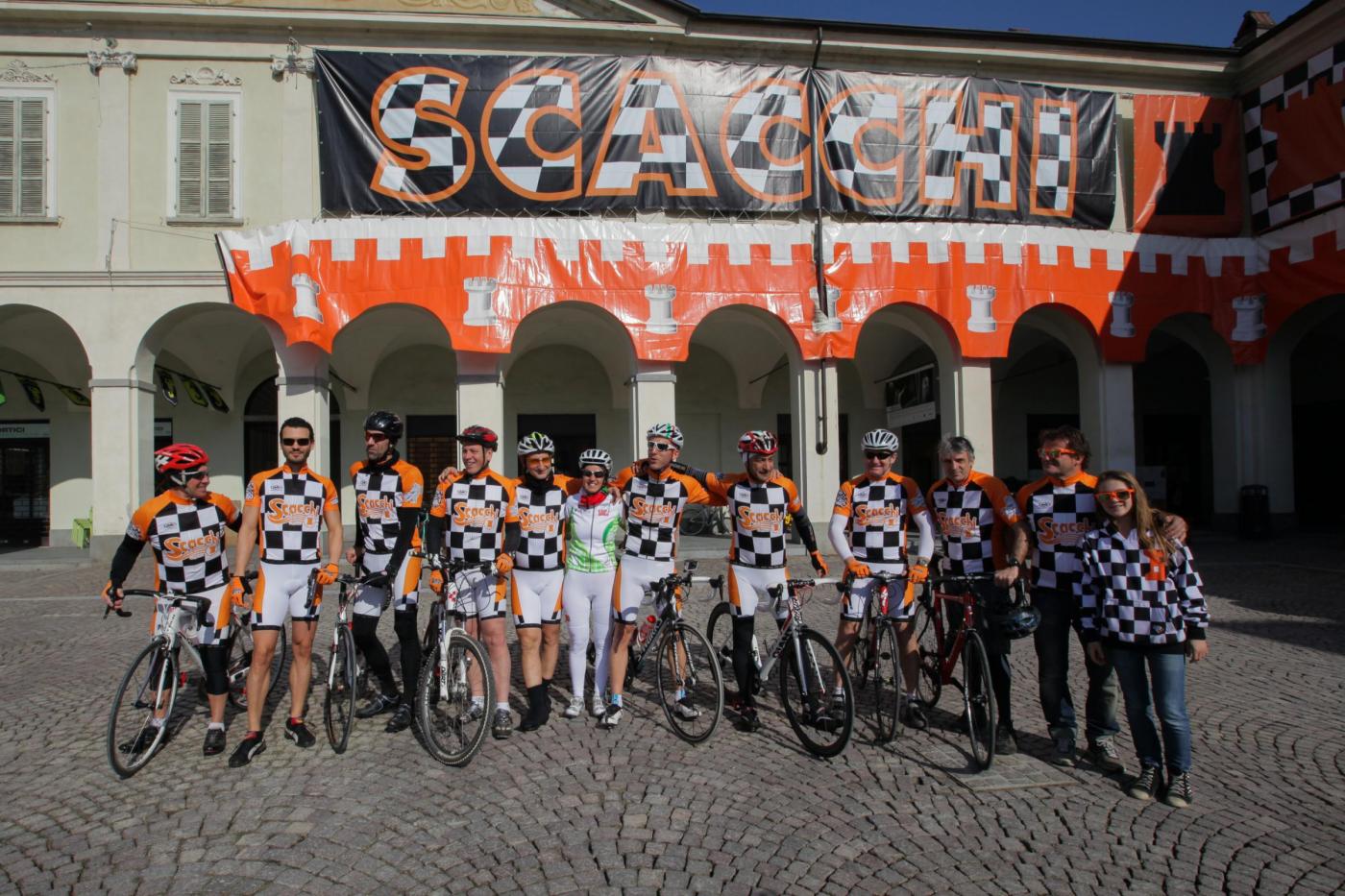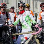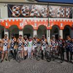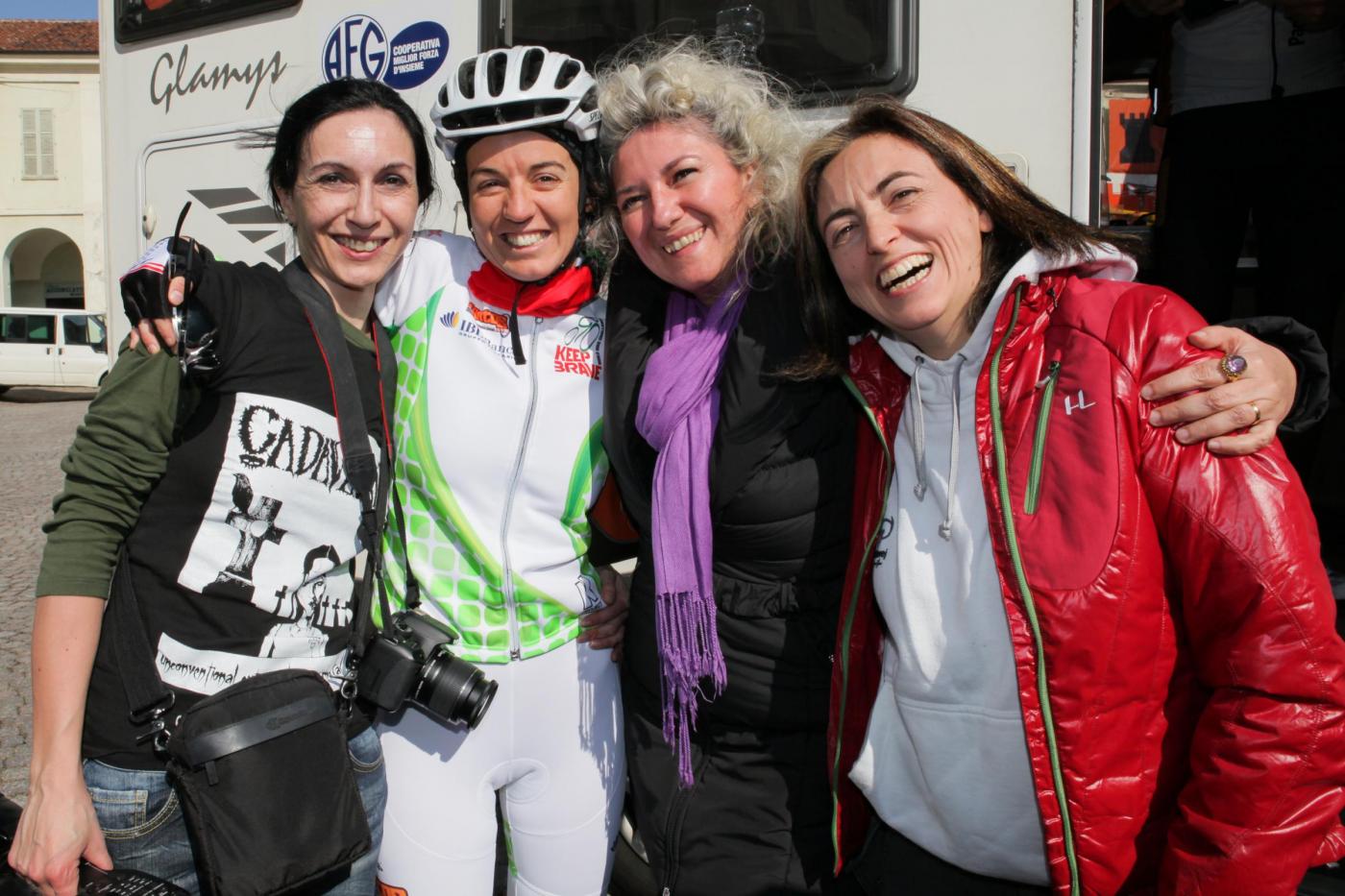 Foto Andrea Negro / LaPresse 08 03 2014 Ivrea (Italia) Ivrea, piazza gremita per la partenza di Paola Gianotti, che farà il giro del mondo in bicicletta Nella foto: l'equipe di donne che la accompagnerà per il giro del mondo in biciFoto Andrea Negro / LaPresse 08 March 2014 Ivrea (Italy) Paola Gianotti, 32, leaving her home in Ivrea will attempt to replicate the success of Greek cyclist Juliana Bhuring, who cycled the same distance around the world in 145 days in 2012