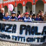 Foto Andrea Negro / LaPresse 08 03 2014 Ivrea (Italia) Ivrea, piazza gremita per la partenza di Paola Gianotti, che farà il giro del mondo in bicicletta Nella foto: i suoi fans con gli striscioni alla partenzaFoto Andrea Negro / LaPresse 08 March 2014 Ivrea (Italy) Paola Gianotti, 32, leaving her home in Ivrea will attempt to replicate the success of Greek cyclist Juliana Bhuring, who cycled the same distance around the world in 145 days in 2012