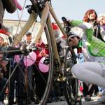 Foto Andrea Negro / LaPresse 08 03 2014 Ivrea (Italia) Ivrea, piazza gremita per la partenza di Paola Gianotti, che farà il giro del mondo in bicicletta Nella foto: Paola Gianotti alla partenzaFoto Andrea Negro / LaPresse 08 March 2014 Ivrea (Italy) Paola Gianotti, 32, leaving her home in Ivrea will attempt to replicate the success of Greek cyclist Juliana Bhuring, who cycled the same distance around the world in 145 days in 2012