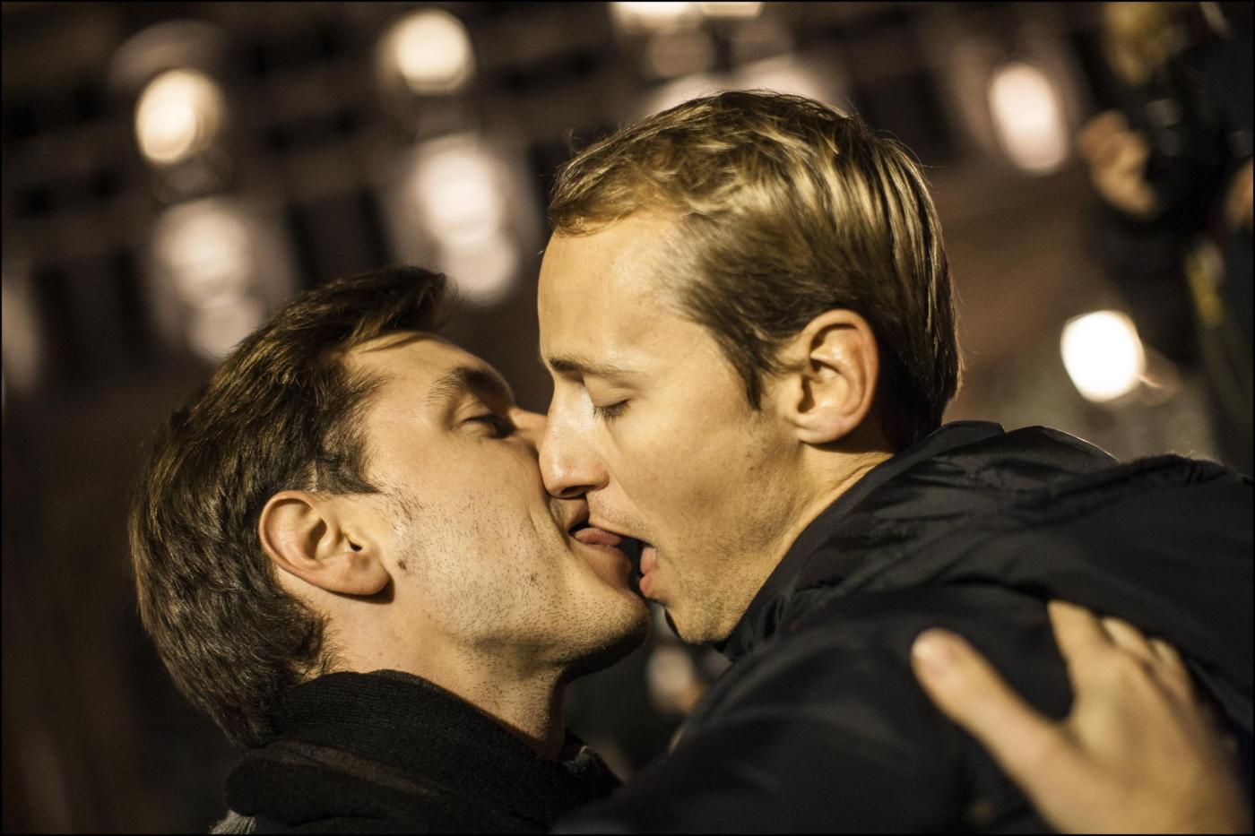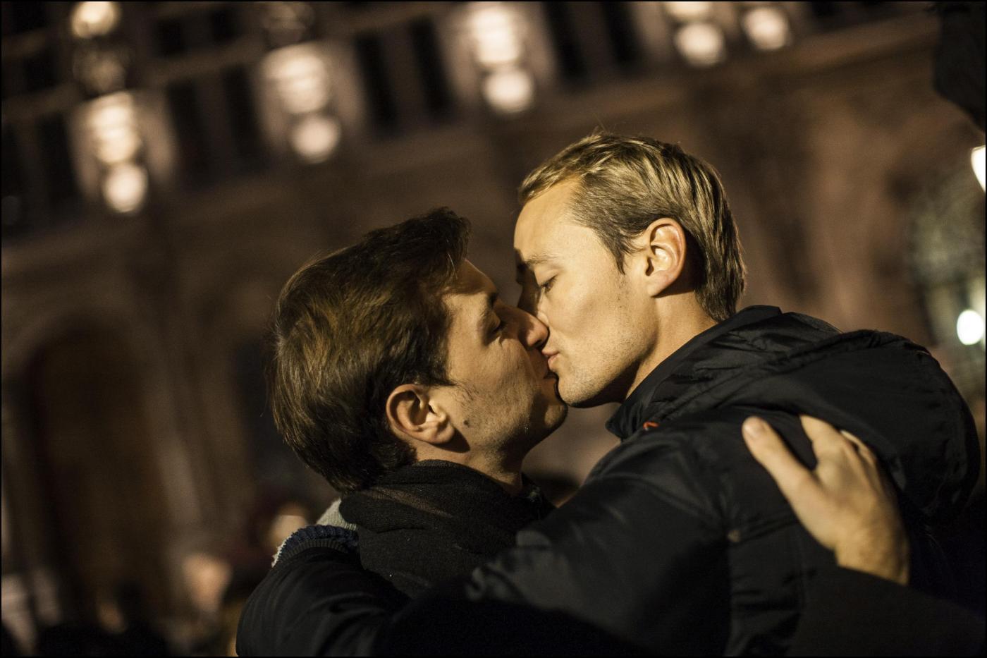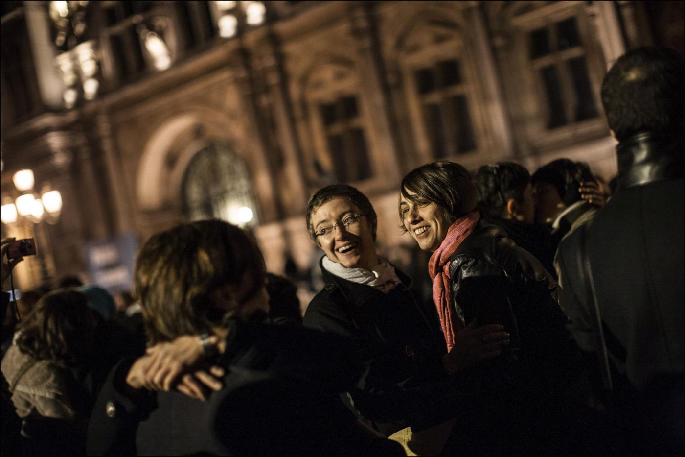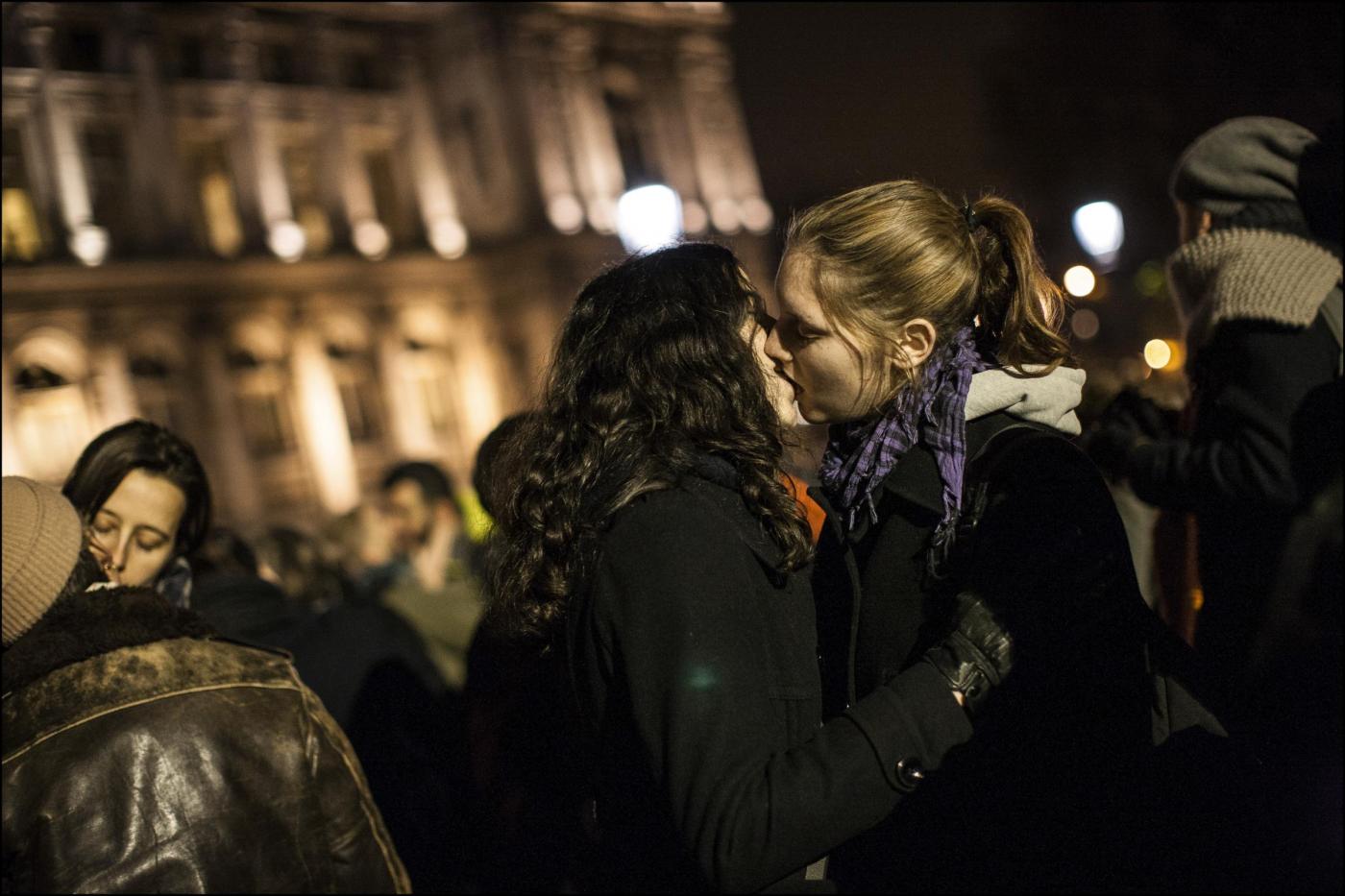PARIGI – A Parigi, decine di coppie omosessuali si sono riunite davanti al municipio di Parigi per manifestare a favore della legalizzazione dei matrimoni gay. Decine di coppie gay e lesbiche, si sono ritrovate dinanzi all’Hotel de Ville Municipio e si sono scambiate baci in pubblico (Ap/LaPresse)