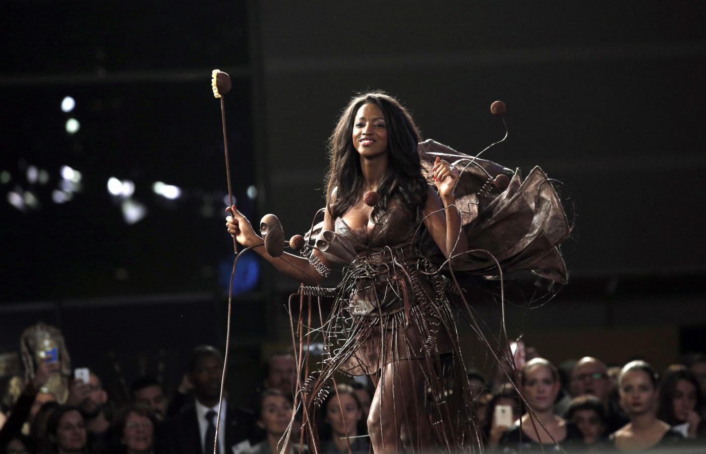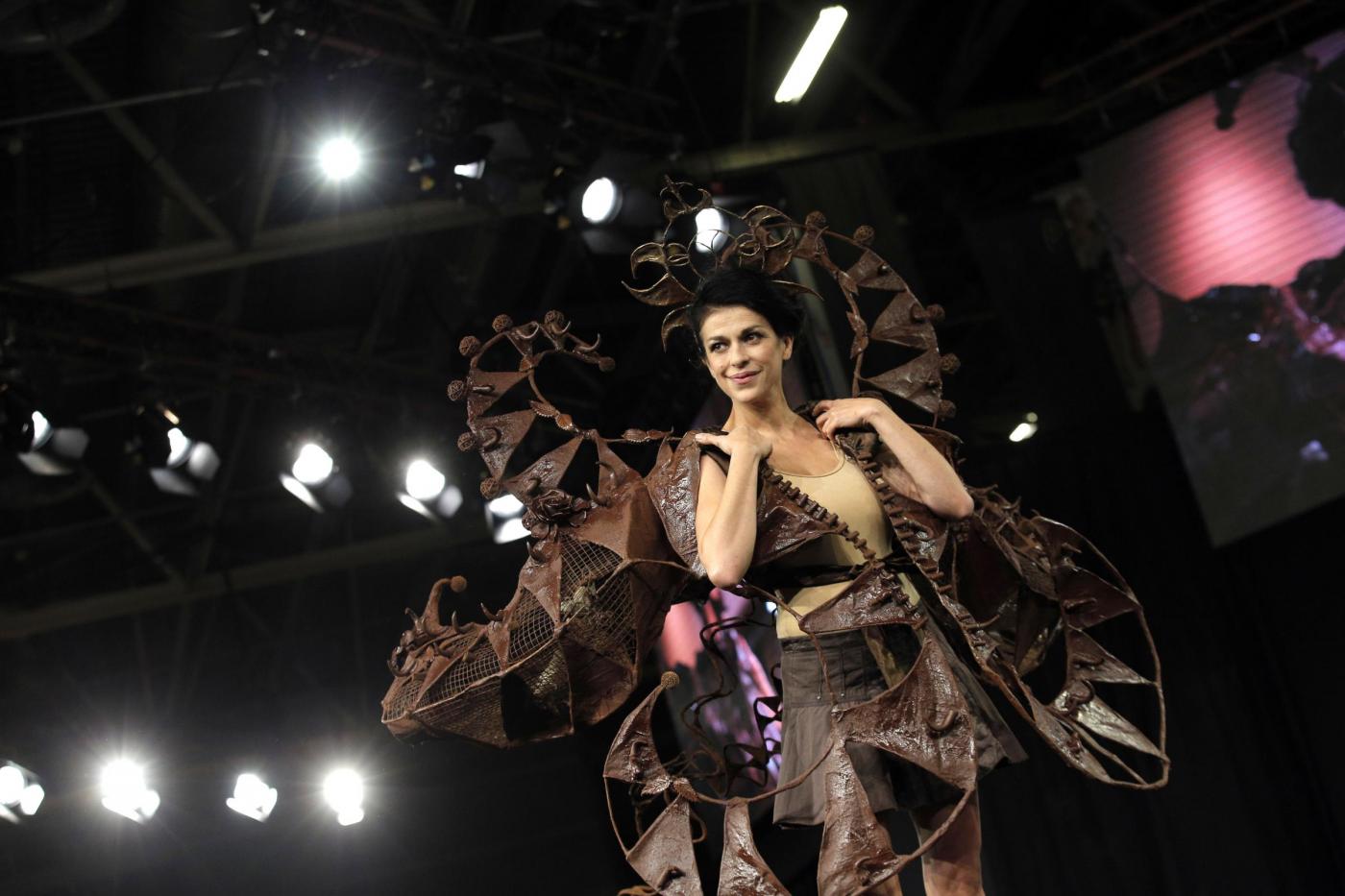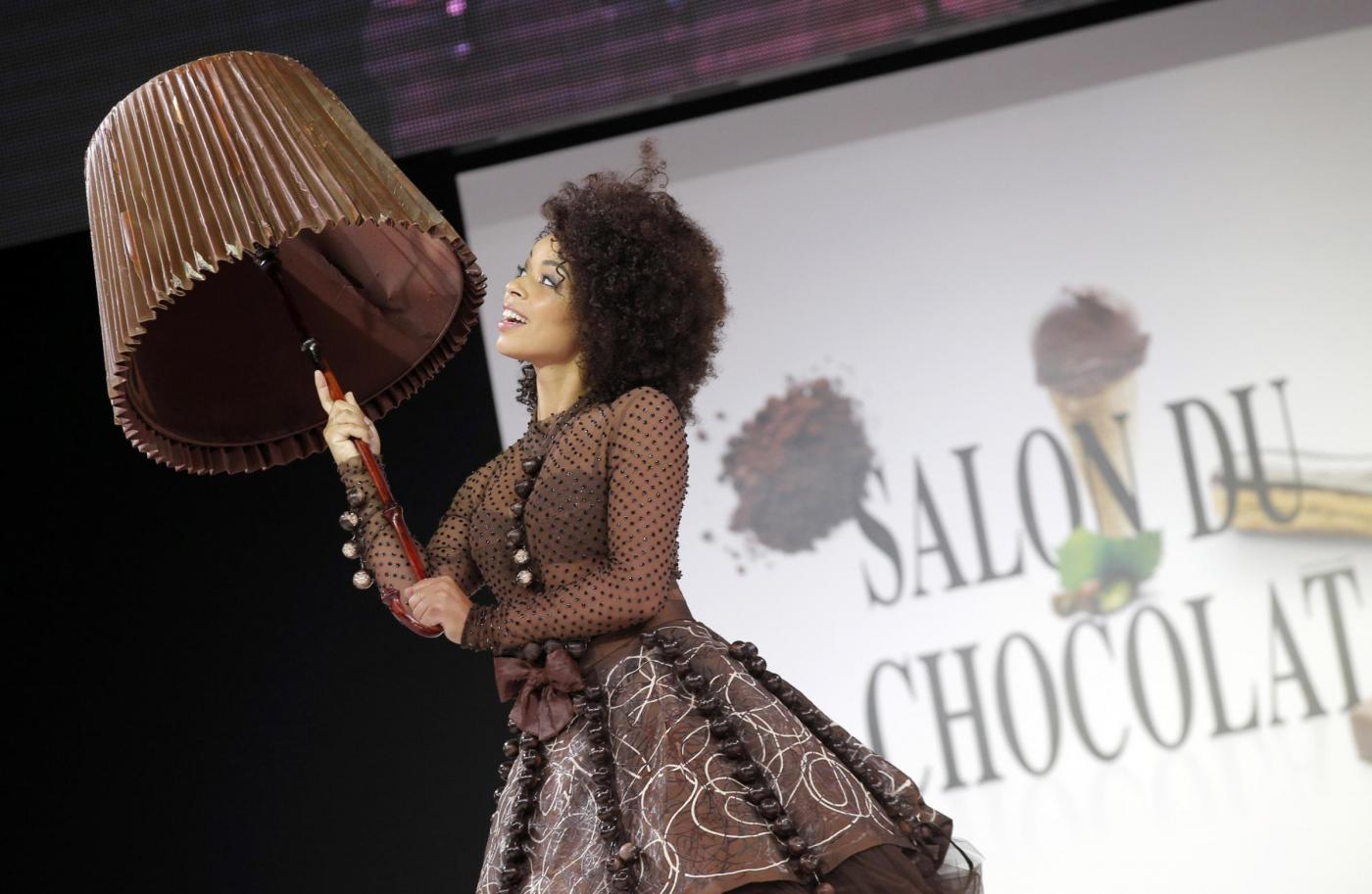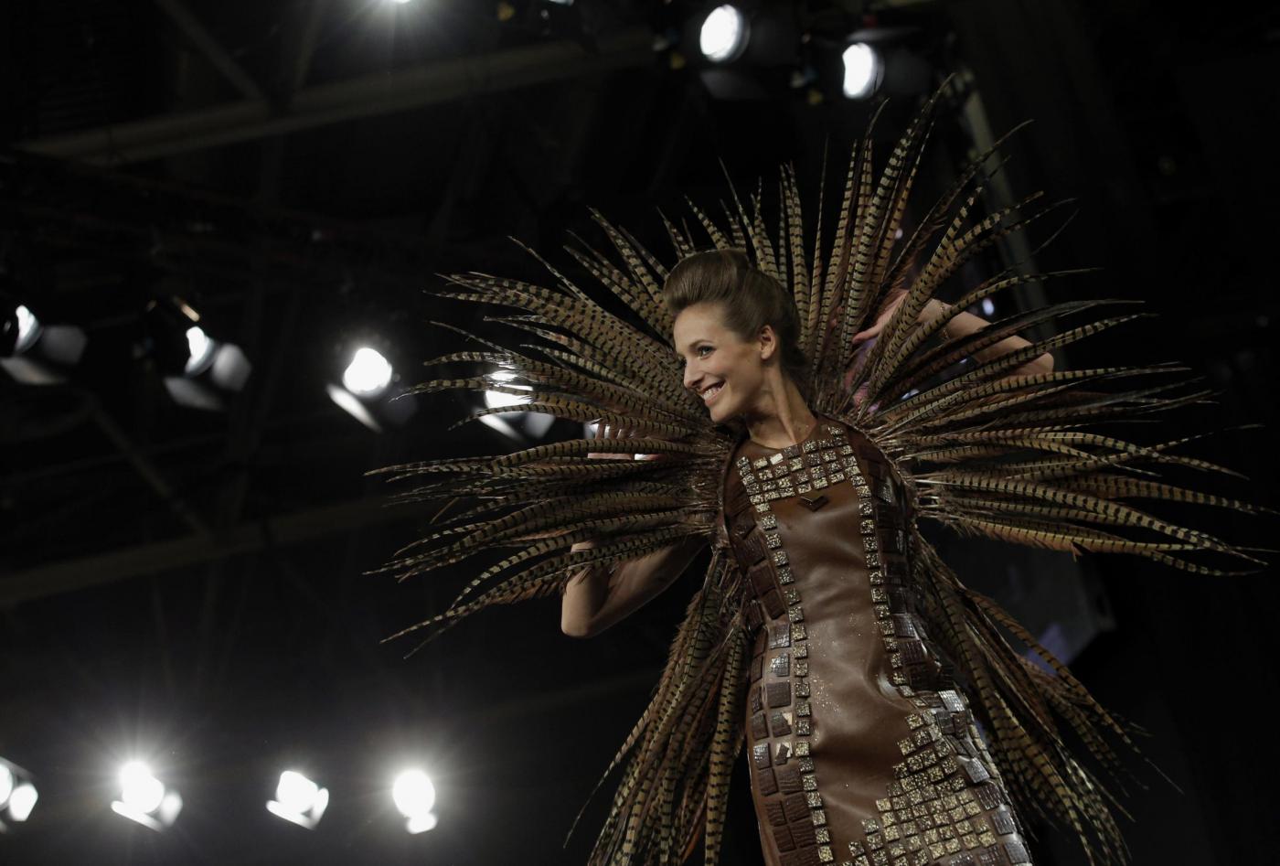 PARIGI – Abiti non solo da ammirare e indossare, ma anche da mangiare. Sono quelli che hanno sfilato alla annuale Fiera del cioccolato di Parigi.