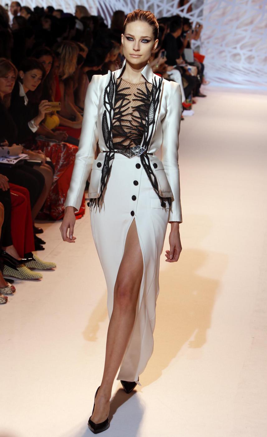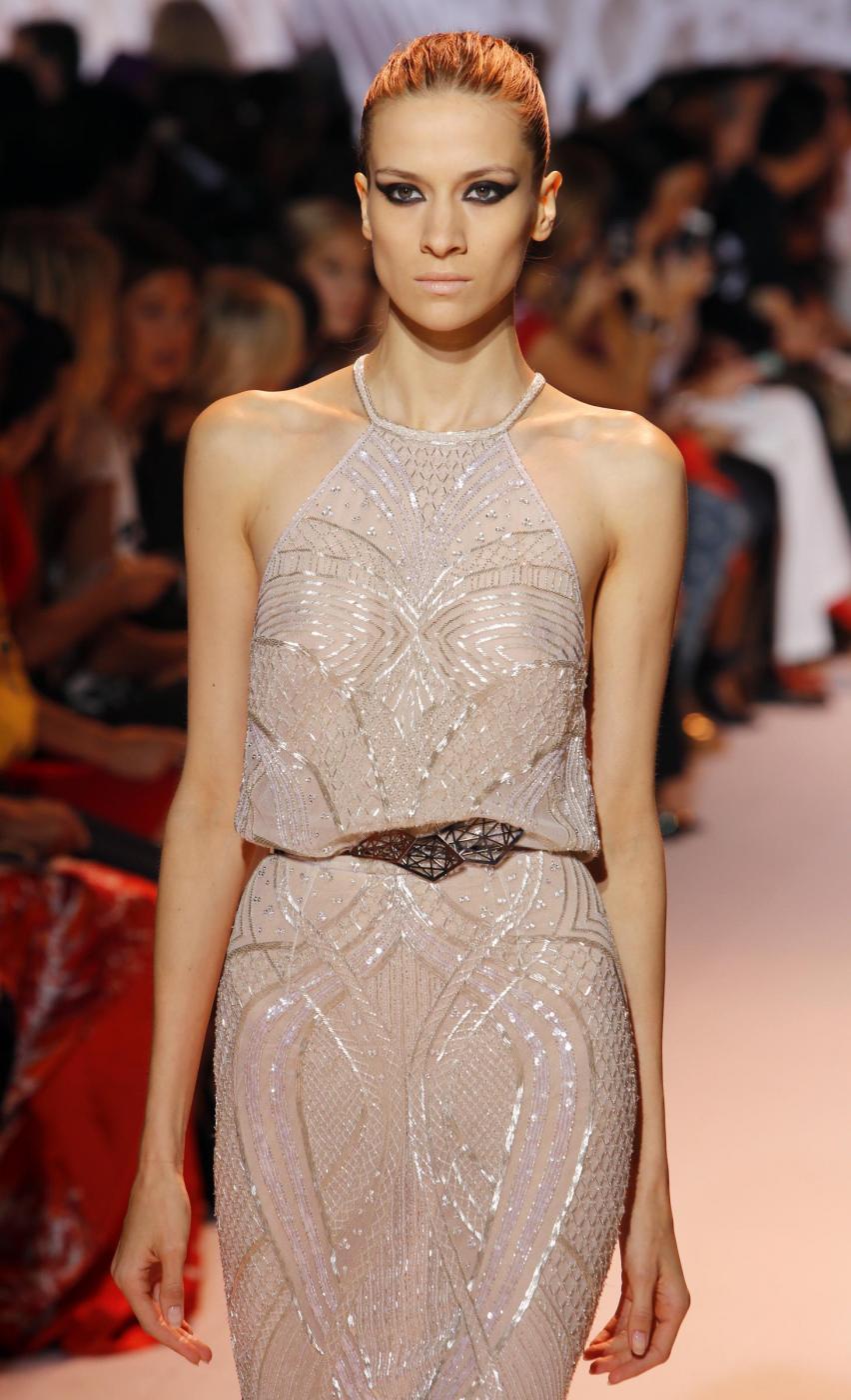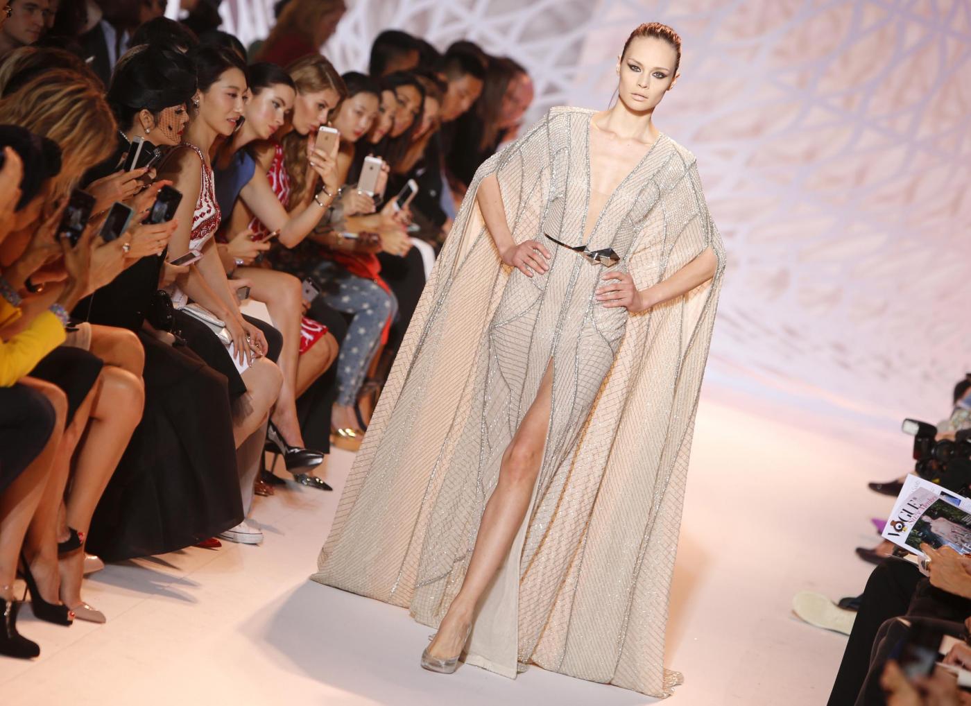 A model presents a creation for Zuhair Murad's fall-winter 2014-2015 Haute Couture fashion colllection in Paris, France, Thursday, July 10, 2014. (AP Photo/Francois Mori)