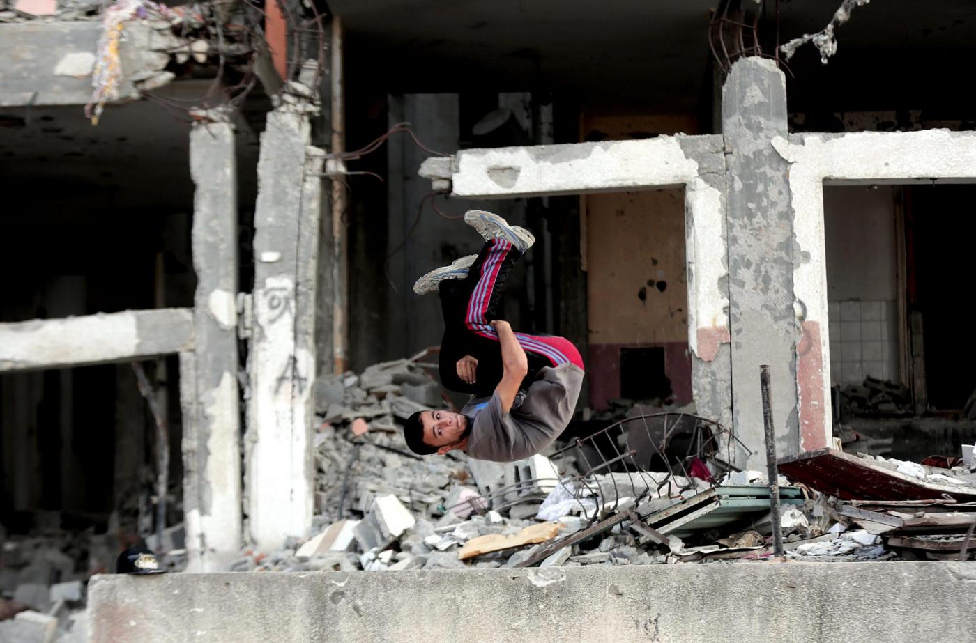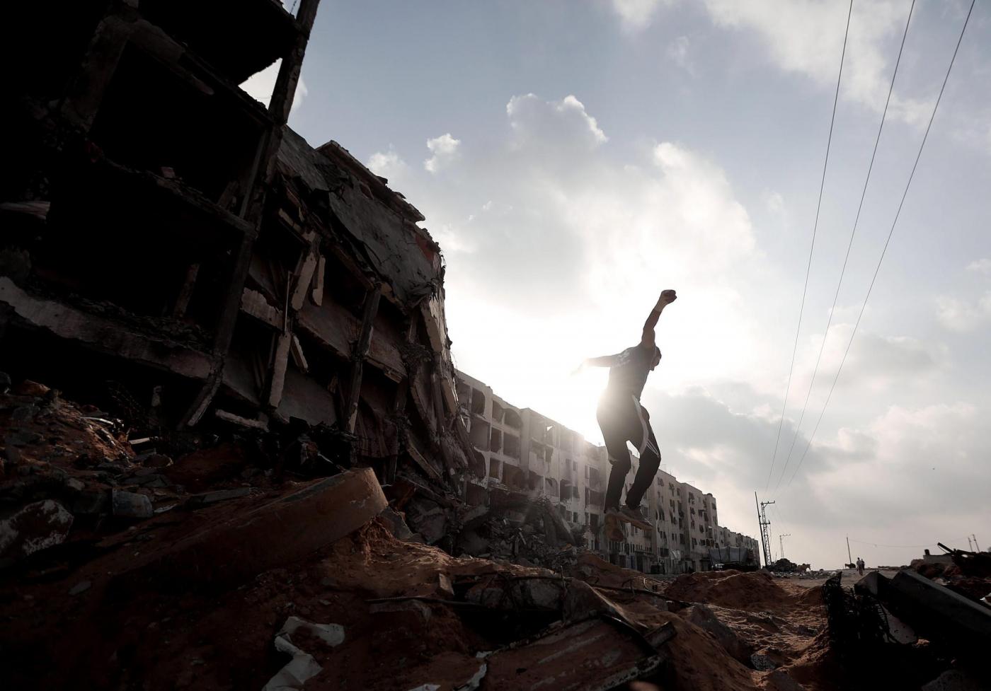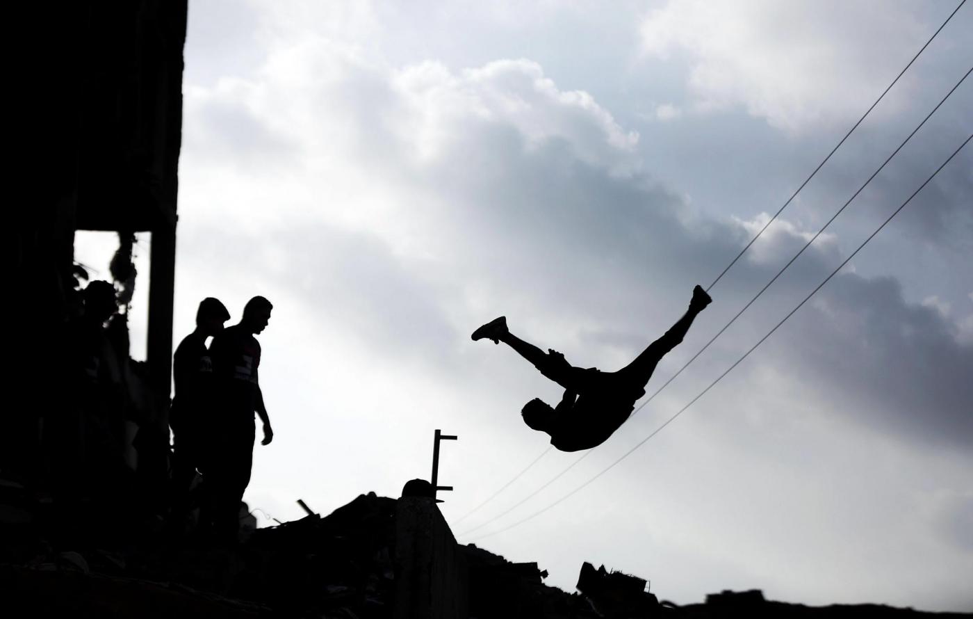 GAZA – A Shejaya, quartiere a est di Gaza City, alcuni ragazzi palestinesi praticano il parkour tra le macerie dei bombardamenti israeliani.