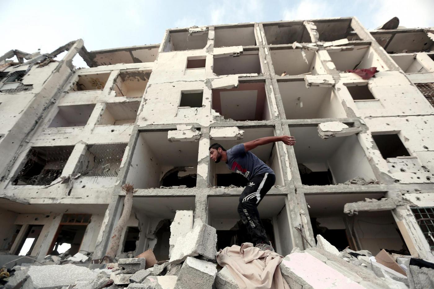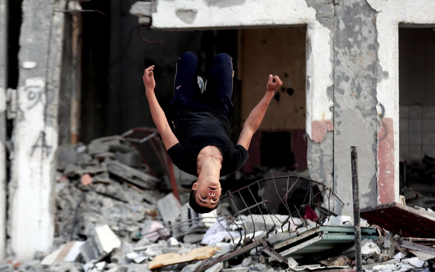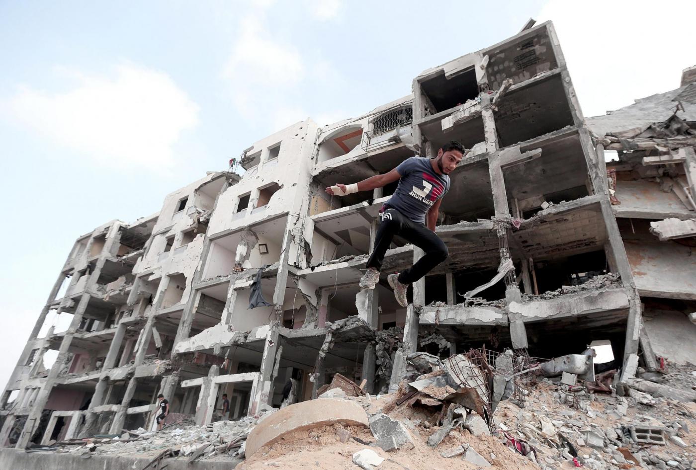 GAZA – A Shejaya, quartiere a est di Gaza City, alcuni ragazzi palestinesi praticano il parkour tra le macerie dei bombardamenti israeliani.