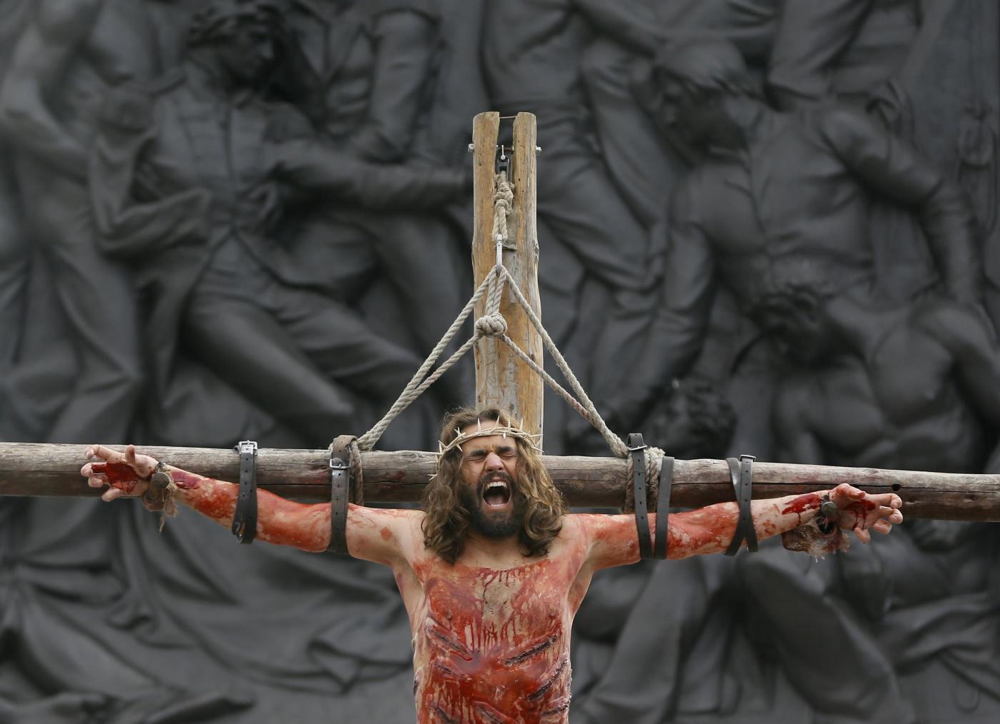 LONDRA – L’attore James Burke-Dunsmore interpreta Gesù Cristo nello rappresentazione della passione di Gesù che si è svolta, come ogni anno, a Trafalgar Square a Londra
