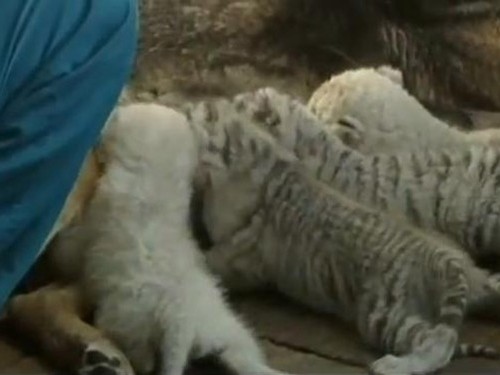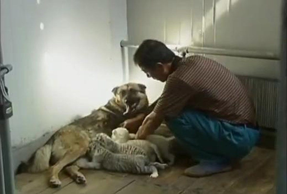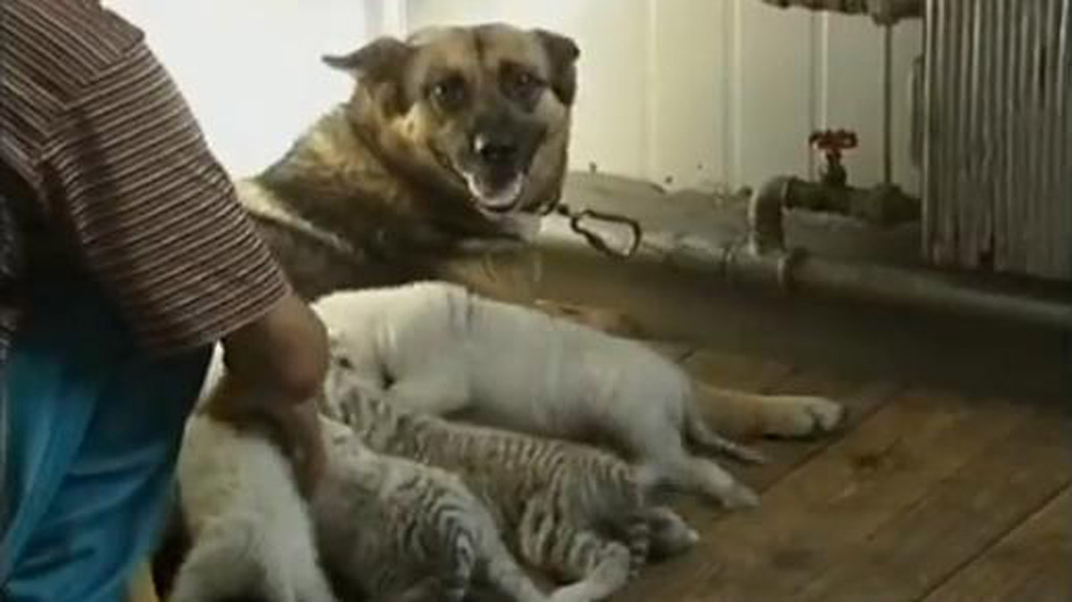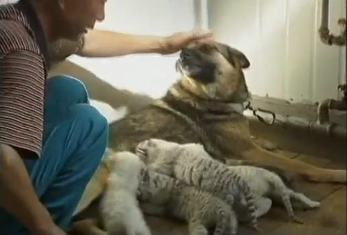 PECHINO – Quattro piccole tigri bianche sono state salvate dall’istinto materno di un pastore tedesco che le ha adottate nella sua cucciolata.