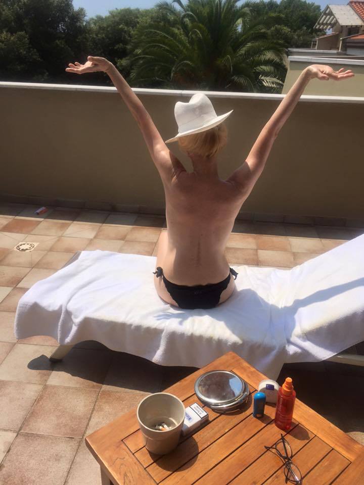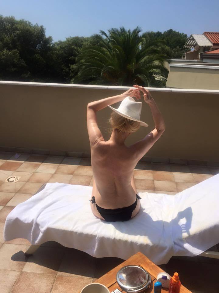 Ne ha quindi approfittato per qualche giorno in libertà, riuscendo a prendere una goccia di sole, come scrive entusiasta sul social network. Slip neri, occhiali da sole e cappello Panama, Patty Pravo mantiene sempre il suo stile anche senza vestiti. FOTO FACEBOOK.