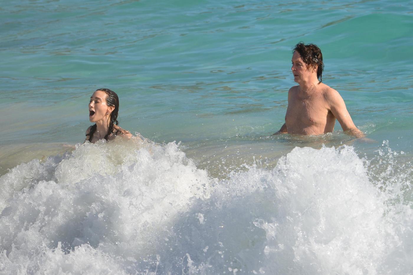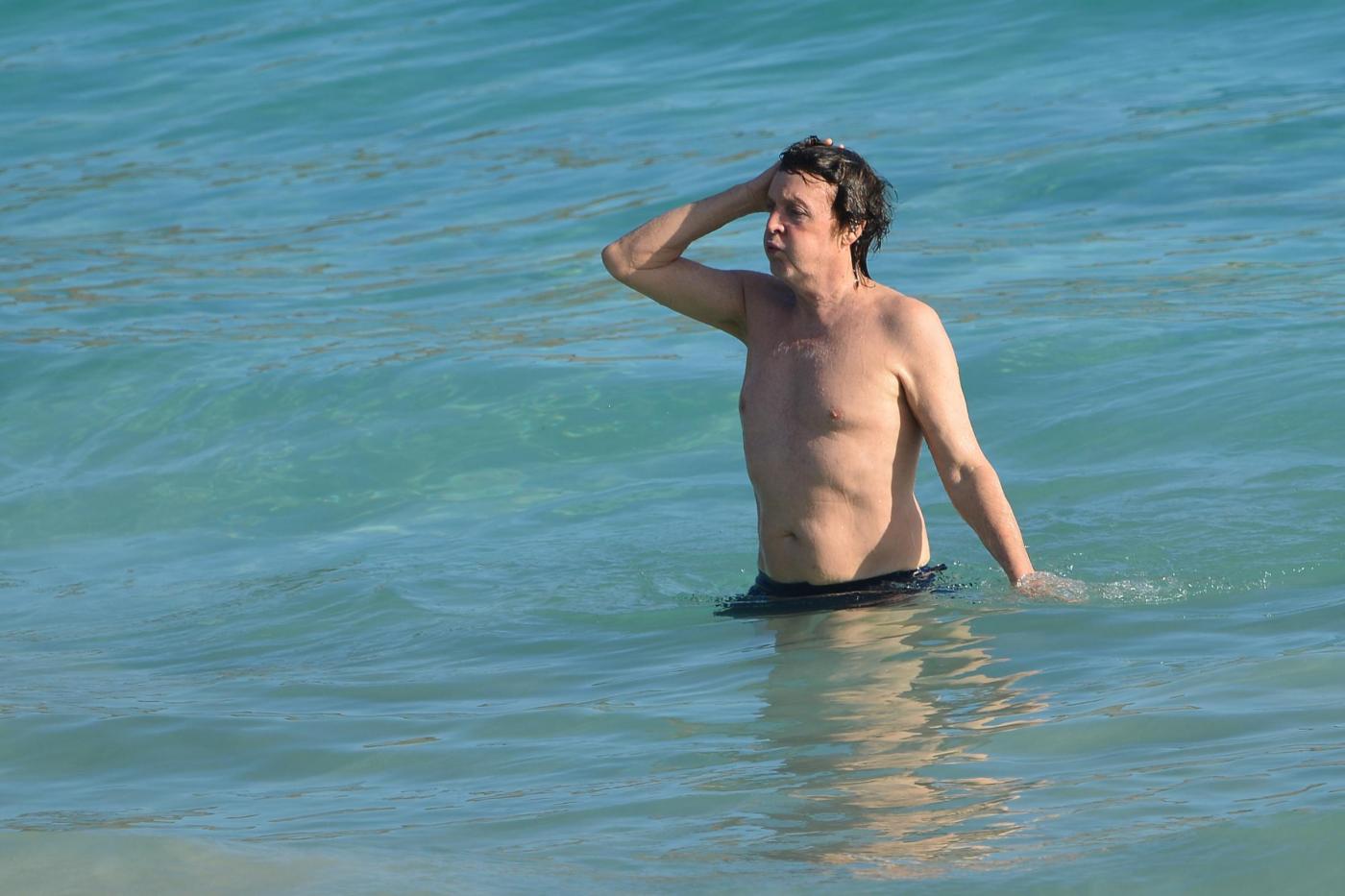 Sir Paul, grazie soprattutto alla dieta vegetariana, a 71 anni si mantiene ancora in forma. Nelle foto scattate sull’isola di St. Barths, l’ex Beatle si lascia cullare dalle onde del mar dei Caraibi insieme a Nancy, 17 anni meno di Paul, anche lei tonica nel suo bikini bianco e nero.