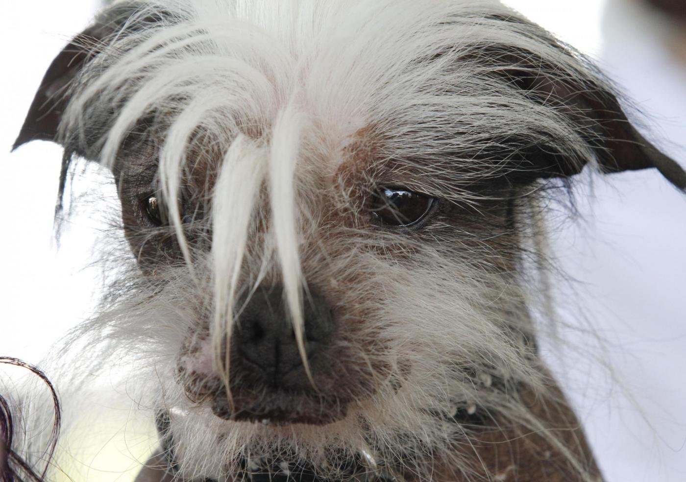 Zoomer, a Chinese Crested from Davis, California, poses during the World's Ugliest Dog Contest, at the Sonoma-Marin Fair, Friday, June 20, 2014, in Petaluma, Calif. (AP Photo/George Nikitin)
