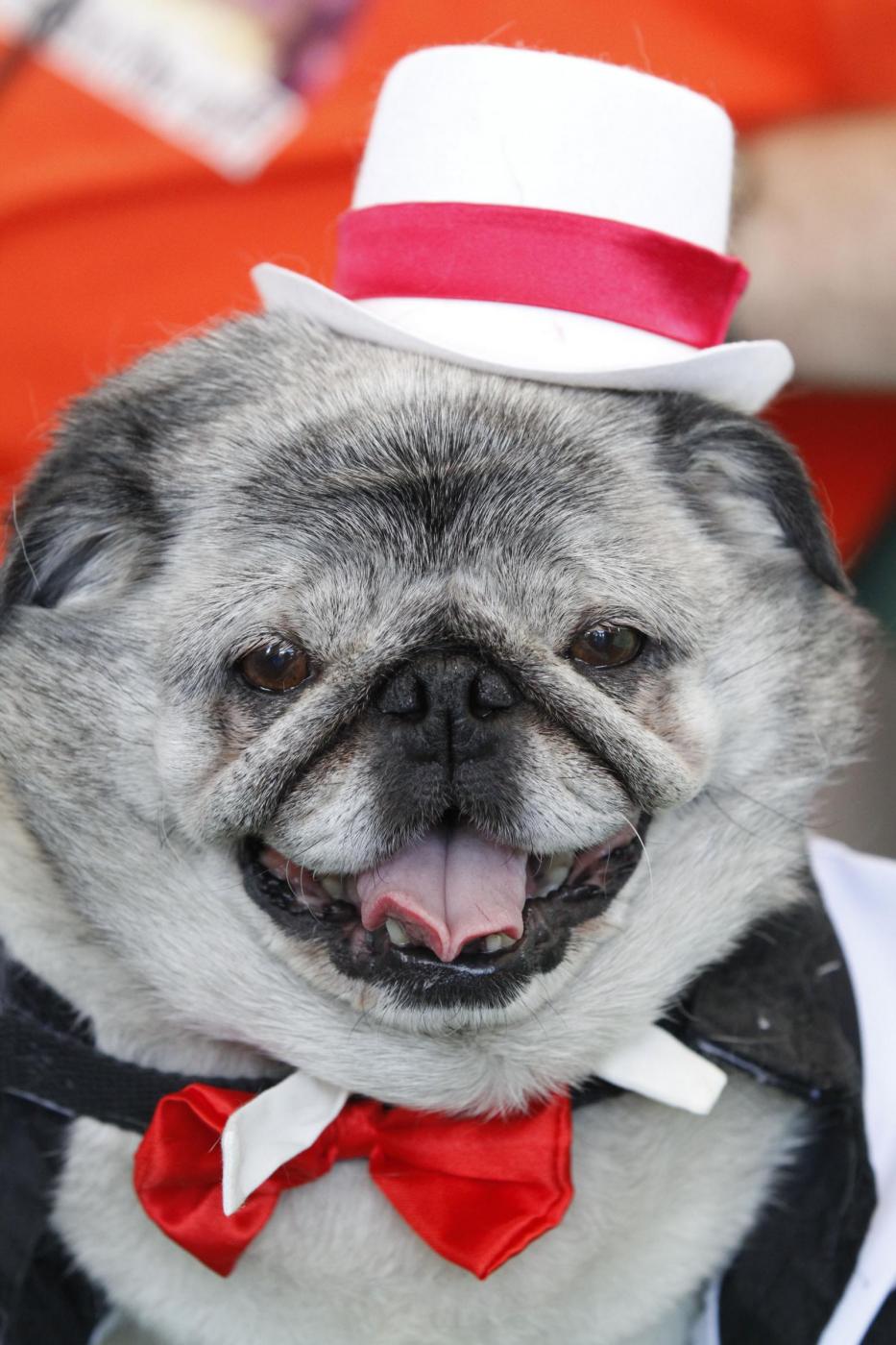 Grovie, an eleven-year-old Chinese Pug, from Santa Rosa, California, is photographed before the start of the World's Ugliest Dog Contest, at the Sonoma-Marin Fair, Friday, June 20, 2014, in Petaluma, Calif. (AP Photo/George Nikitin)