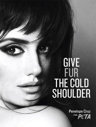 Nel cartellone affisso a Madison square garden a New York, lo scatto fotografico della Peta mostra la Cruz con la testa voltata dietro le sue spalle nude accanto alle parole ‘Give fur the cold shoulder’ (Volta le spalle alla pelliccia). Il cartellone pubblicitario resterà collocato a New York per tutta la durata della settimana della moda newyorkese dal 9 al 16 febbraio. Campagne simili si svolgeranno anche a Londra e a Milano. La Cruz ha sempre condannato l’uso delle pellicce vere nell’abbigliamento, infatti, nella collezione moda disegnata con la sorella per la catena spagnola Mango non c’è nessun capo realizzato con il pelo degli animali.