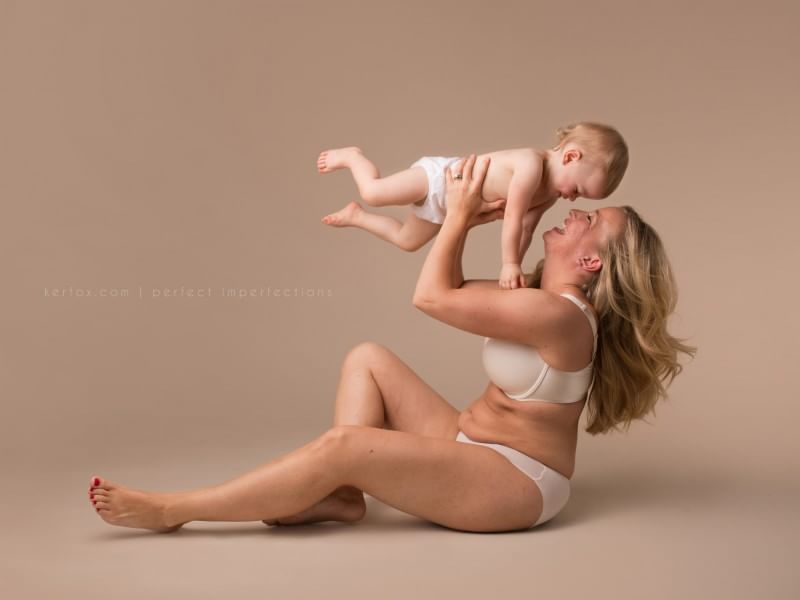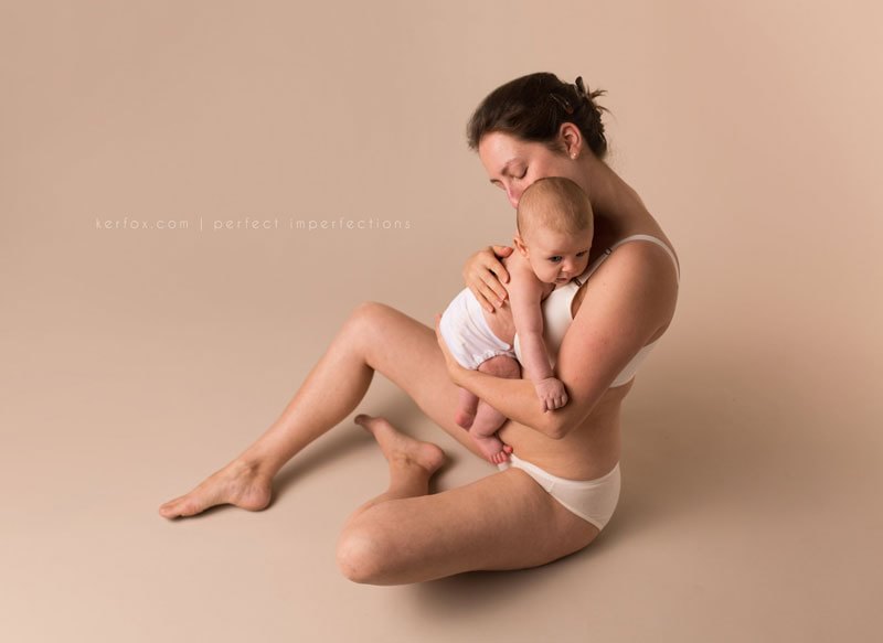 Le donne di Perfect Imprerfections hanno voluto mostrare con orgoglio, le imperfezioni provocate dal parto. L’idea è nata a Neely Ker-Fox, una fotografa statunitense che dopo il parto ha avuto un’ernia ombelicale, smagliature sul ventre e sulle cosce ed altre imperfezioni. In “Perfette imperfezioni”, questa la traduzione italiana del suo progetto fotografico, la fotografa ha convinto altre mamme fisicamente “imperfette”a causa del parto a postare con i propri figli. in tutto sono state in 30: tutte, dopo aver partorito vanno fiere dei segni che la maternità ha lasciato sui loro fianchi, sulle loro pance, sulle loro gambe.