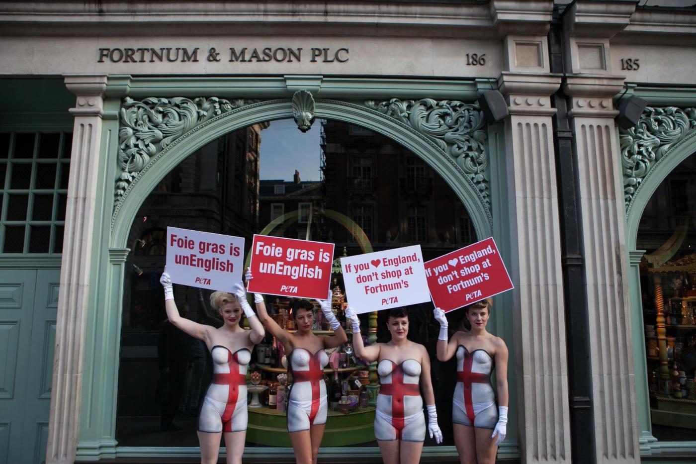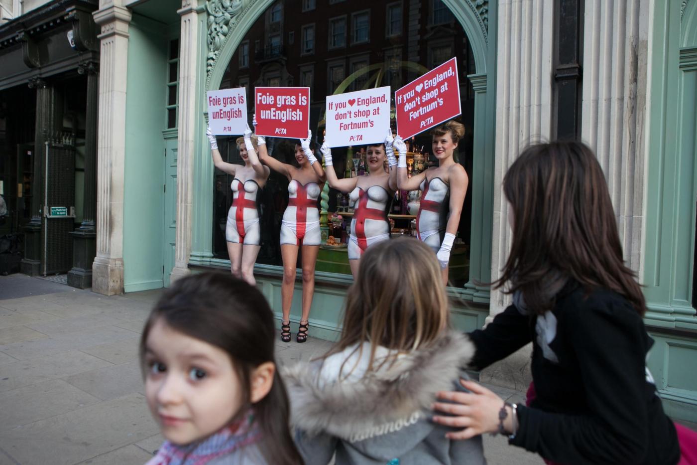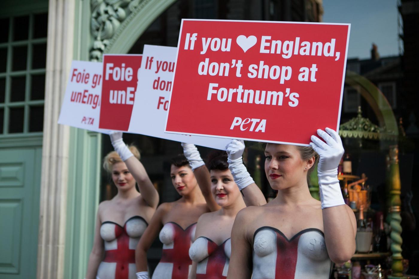 LONDRA – Alcune attiviste della Peta (“People for the Ethical Treatment of Animals” n.d.r) martedì 23 aprile hanno protestato a Londra fuori dai grandi magazzini Fornum & Mason.