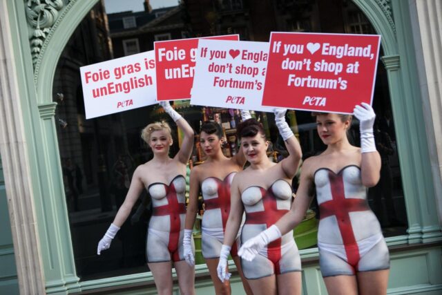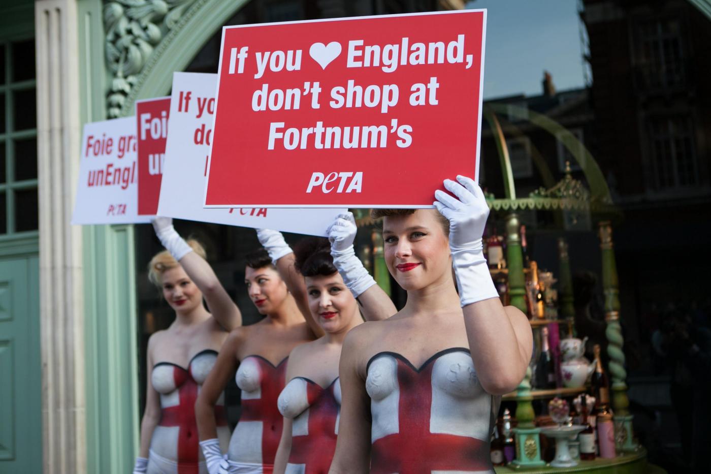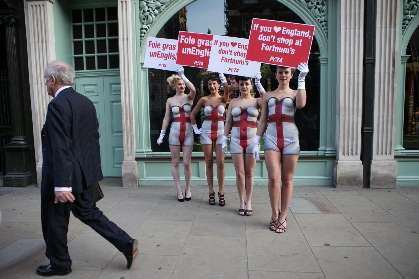 LONDRA – Alcune attiviste della Peta (“People for the Ethical Treatment of Animals” n.d.r) martedì 23 aprile hanno protestato a Londra fuori dai grandi magazzini Fornum & Mason.