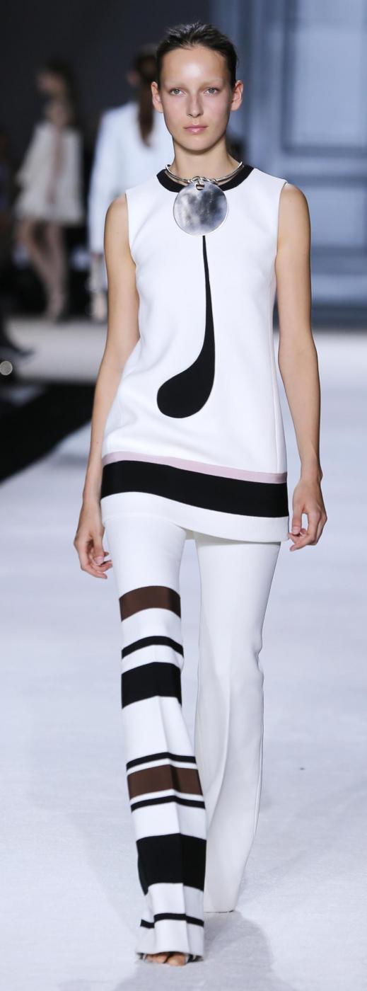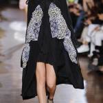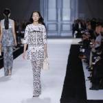 “Giambattista Valli – commenta Asnaghi – scrive un nuovo capitolo della sua moda assemblando ispirazioni che vanno dal rigore delle architetture giapponesi alla dolcezza dei fiori di pesco, mixati a suggestioni che si rifanno al design industriale. Che sulla passerella si traducono in abiti di gran fascino, dai tagli essenziali ma con ricami preziosi di fiori rosa o con decori fatti di centinaia di foglie intagliate nel tessuto. Le frange ondeggiano su cappe corte al ginocchio mentre gli abiti da sera, che arrivano poco sopra alla caviglia, sono capolavori sartoriali percorsi da intarsi geometrici”.