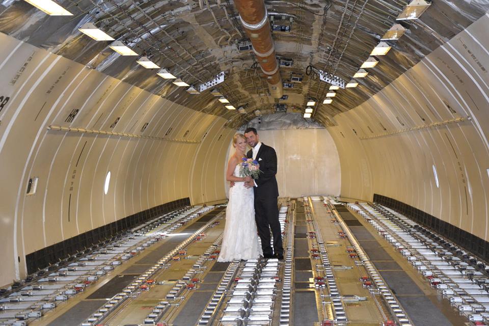 Le foto dei due sposi sono state pubblicate sulla pagina Facebook della compagnia aerea tedesca Lufthansa Cargo, che ha commentato: