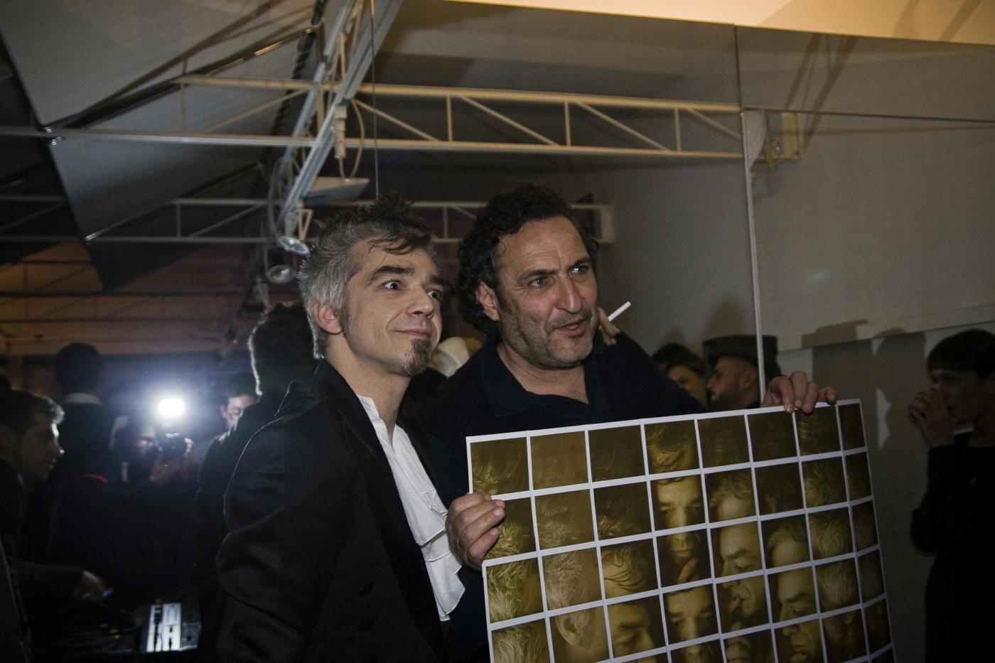 ITALIA. Firenze, 8 gennaio 2013. Maurizio Galimberti insieme a Morgan mostra il ritratto del cantante appena realizzato. Evento presentato da "Brini vs Wait R-Evolution" in collaborazione con KeyHole. Presso Brini Fashion Agent.