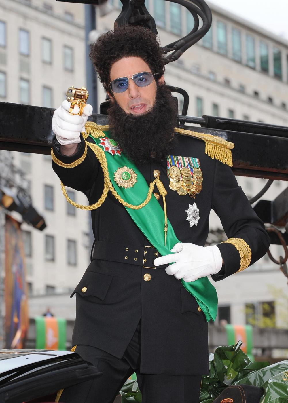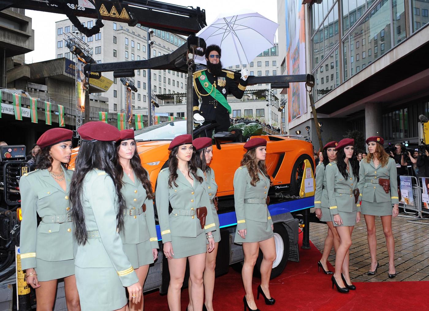 LONDRA – Prima mondiale a Londra per ‘Il dittatore’, il nuovo lavoro cinematografico di Sasha Baron Cohen. Il nuovo personaggio dell’eclettico attore segue le orme di Ali G, Borat e Bruno e vede il comico 40enne nei panni dell’ammiraglio generale Shabazz Aladeen, un dittatore militare dell’inventata Repubblica nordafricana di Wadiya. Baron Cohen ha preso parte alla prima del film e non ha deluso i suoi fan arrivando sul tappeto rosso con i costumi di scena scortato da uno stuolo di sexy soldatesse e ironizzando nel suo solito modo politicamente scorretto.