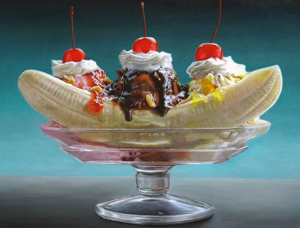 NEW YORK – Ingredienti per questa ricetta: tele, pennelli e colori a olio. Lei è Mary Ellen Johnson, una pittrice del West Broadway che realizza delle vere e proprie opere d’arte votate al mondo del food. I suoi piatti sono delle delizie da assaporare con gli occhi, ogni sua immagine infatti, stuzzica il palato e fa brontolare lo stomaco. Per realizzare le sue ricette non mescola uova, burro e farina, ma colori sulla tela. I suoi lavori sono così realistici che grazie alle sue mostre ha già fatto venire il languorino a più di un Newyorkese. I piu’ golosi si preparino ad un’esperienza unica, non sentitevi a disagio se davanti ad una sua opera non riuscirete a staccare lo sguardo dalla glassa delle tortine, dagli sciroppi che scivolano dolcemente su frutta e gelato e dalle cialde di cioccolato. Per chi invece è un amante del salato, niente paura, il menu prevede anche un ricco sushi, un’invitante pizza e un immancabile cheesburger.