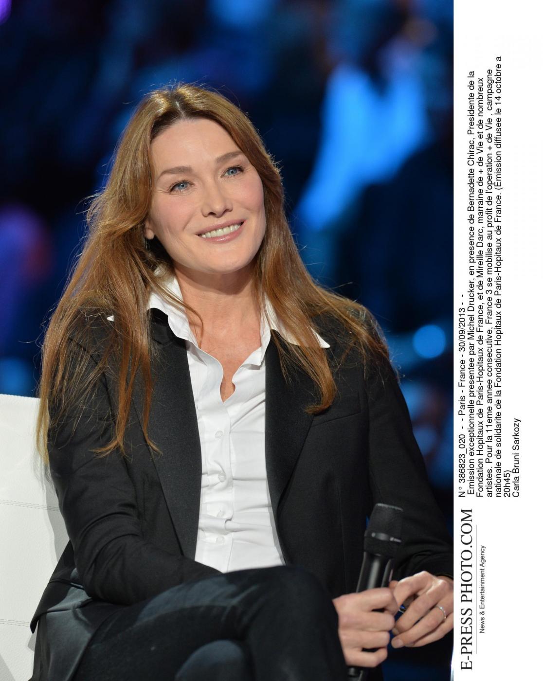 Emission exceptionnelle presentee par Michel Drucker, en presence de Bernadette Chirac, Presidente de la Fondation Hopitaux de Paris-Hopitaux de France, et de Mireille Darc, marraine de + de Vie et de nombreux artistes. Pour la 11eme annee consecutive, France 3 se mobilise au profit de l'operation + de Vie, campagne nationale de solidarite de la Fondation Hopitaux de Paris-Hopitaux de France. (Emission diffusee le 14 octobre a 20h45) Laresse Only italyCarla Bruni Sarkozy