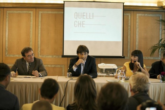 LaPresse14-09-2012 Milano, ItaliaSpettacoloConferenza stampa di presentazione 'Quelli che il calcio'Nella foto: da sinistra furio Corsetti, Giorgi Daviddi e Gabriele Corsi, sono il Trio Medusa