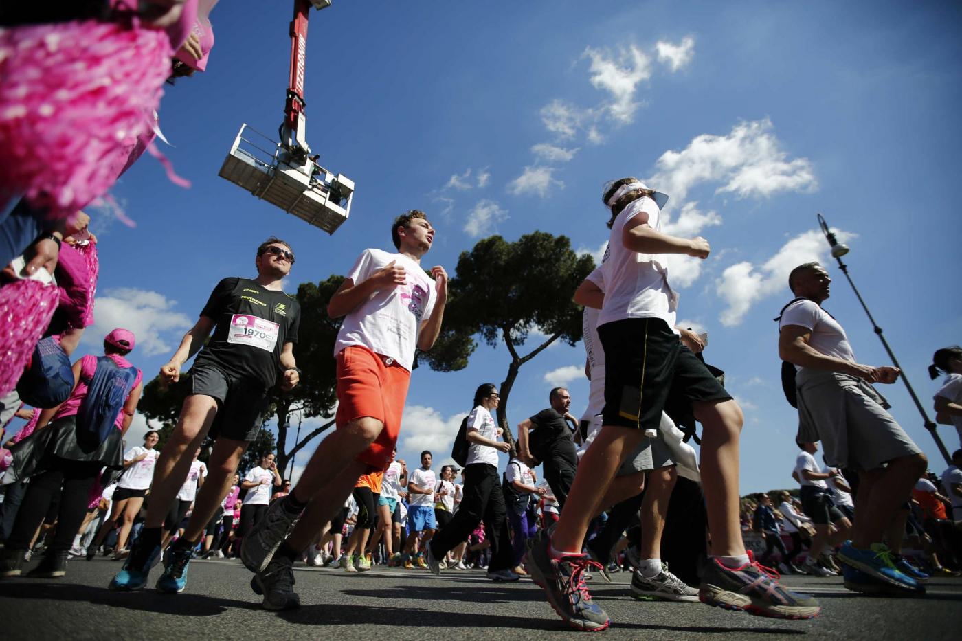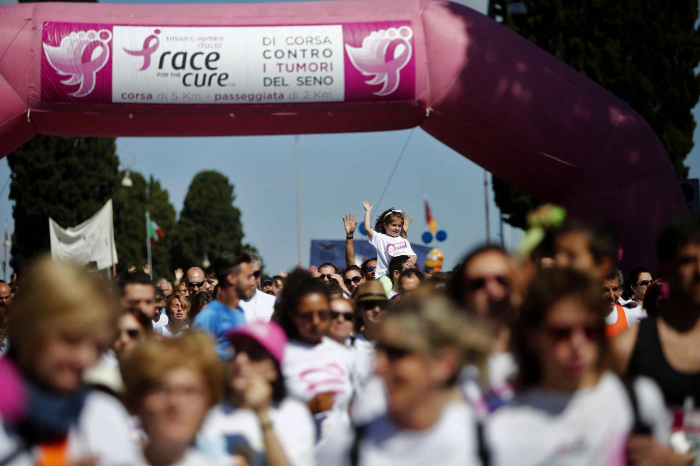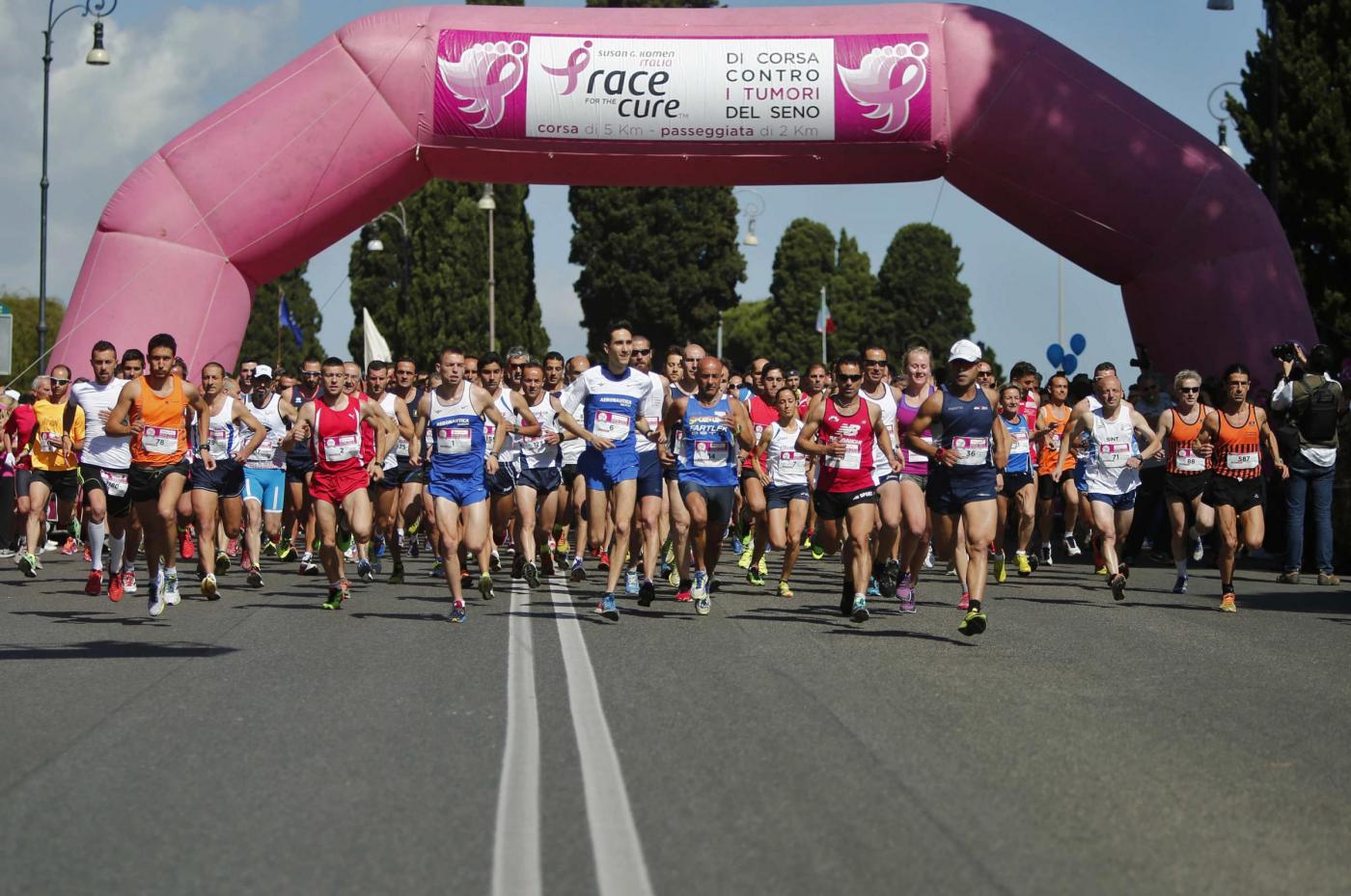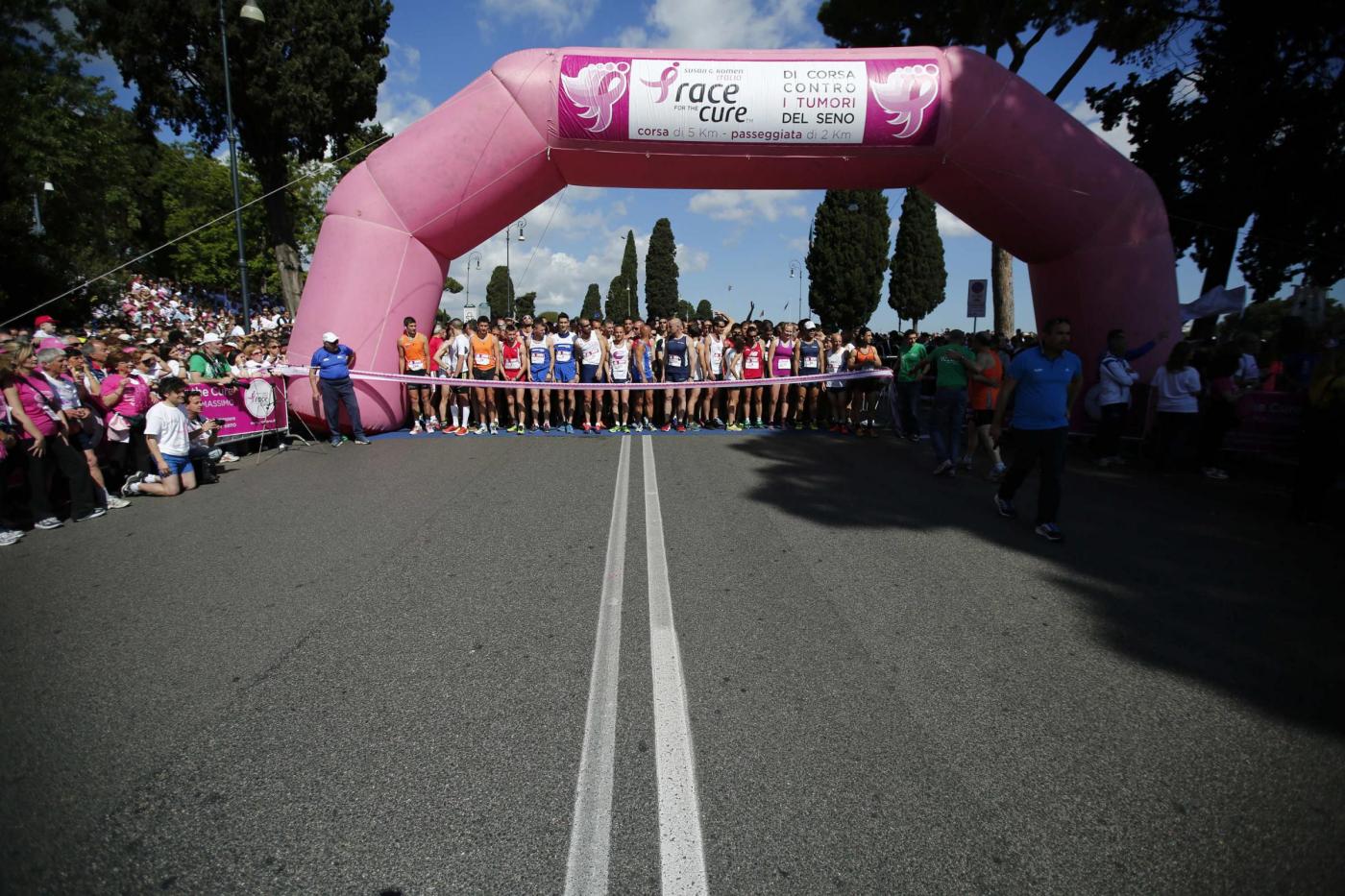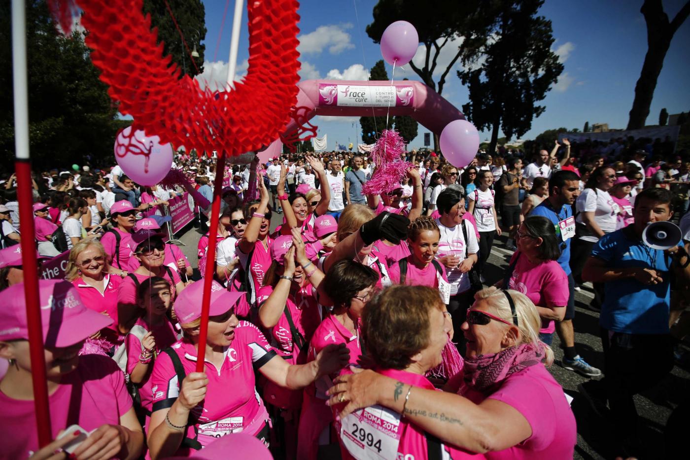 ROMA – Domenica 18 maggio, è partita dal Circo Massimo la 15esima edizione della ‘Race for the cure’, la corsa dedicata alla sensibilizzazione per le malattie femminili, in particolare il cancro al seno: sono oltre 60 mila gli iscritti alla manifestazione che quest’anno partecipano alla mattinata di sport e di solidarietà. I corridori percorreranno via delle Terme di Caracalla, via di San Gregorio, via Celio Vibenna, via degli Annibaldi, via Cavour, via dei Fori Imperiali, di nuovo via Celio Vibenna, via di San Gregorio per tagliare infine il traguardo a via dei Cerchi. A dare il via alla manifestazione il presidente della ‘Susan G. Komen’, Judy Salerno, il ministro della Salute Beatrice Lorenzin e il sindaco di Roma Ignazio Marino con le madrine Rosanna Banfi e Maria Grazia Cucinotta.