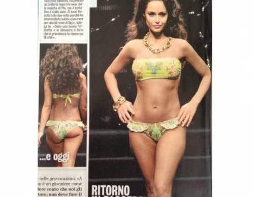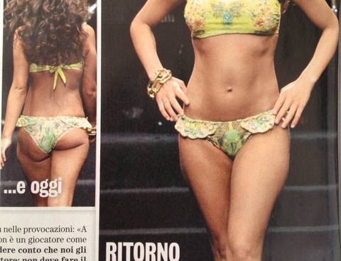 Così “Diva e Donna” mostra una foto di Raffaella Fico prima della gravidanza, quando durante il programma “L’isola dei Famosi” sfoggiava dei glutei da urlo, sodi e scultorei. Accanto, una foto di Raffaella Fico di poco tempo fa, dopo la gravidanza, mentre sfila per una linea di costumi con il sedere… non più sodo come qualche anno fa.
