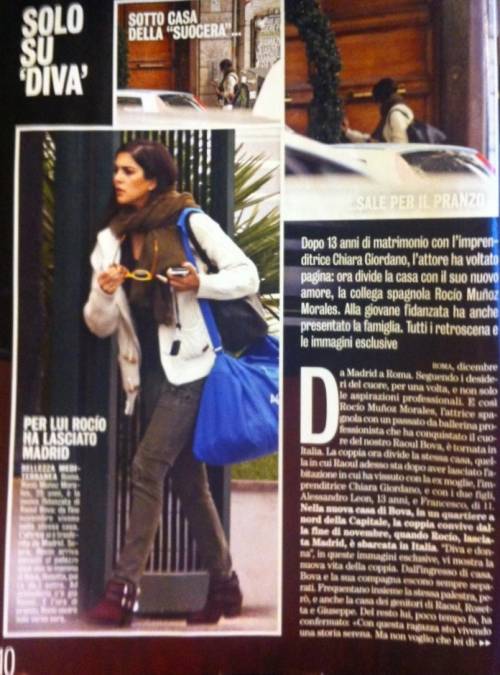 “Da Madrid a Roma. Seguendo i desideri del cuore, per una volta, e non solo le aspirazioni professionali. E così Rocío Muñoz Morales, l’attrice spagnola con un passato da ballerina professionista che ha conquistato il cuore del nostro Raoul Bova, è tornata in Italia. La coppia ora divide la stessa casa, quella in cui Raoul adesso sta dopo aver lasciato l’abitazione in cui ha vissuto con la ex moglie, l’imprenditrice Chiara Giordano, e con i due figli, Alessandro Leon, 13 anni, e Francesco, di 11″.