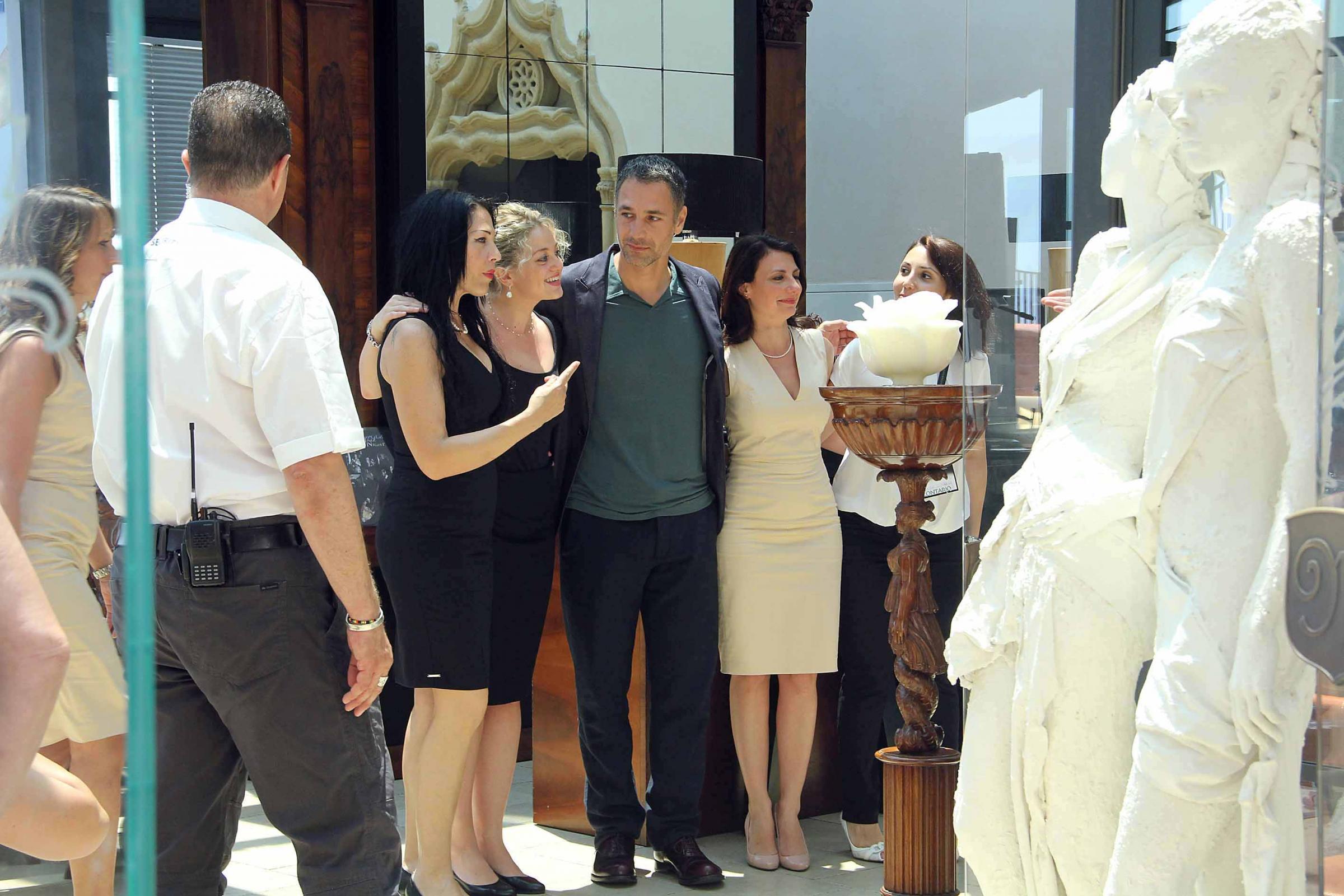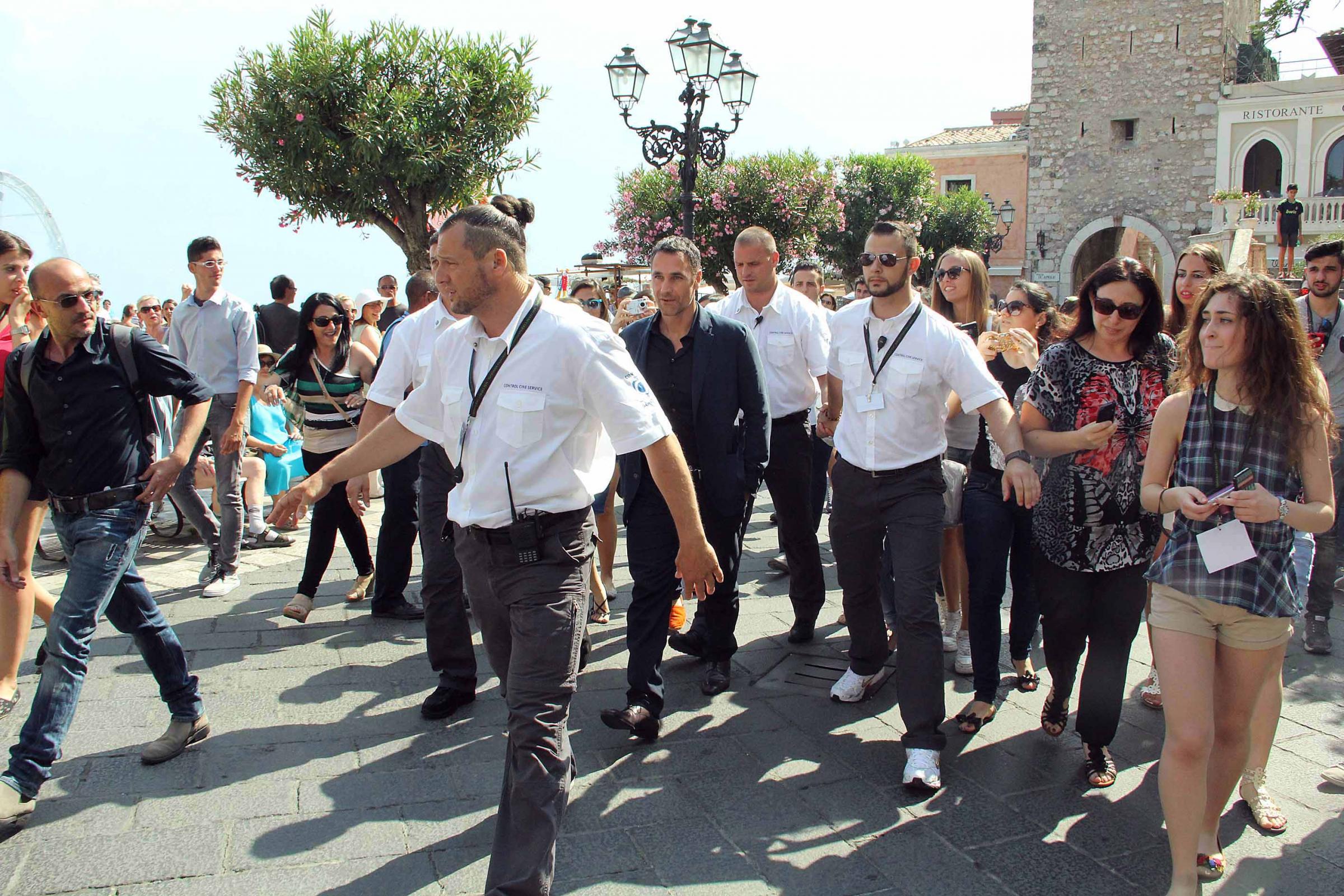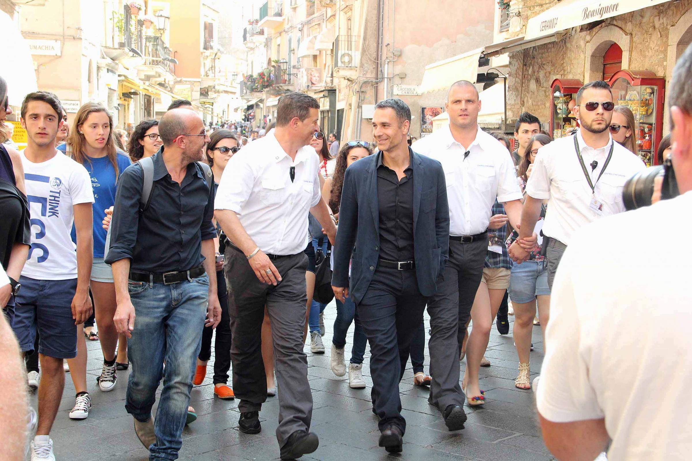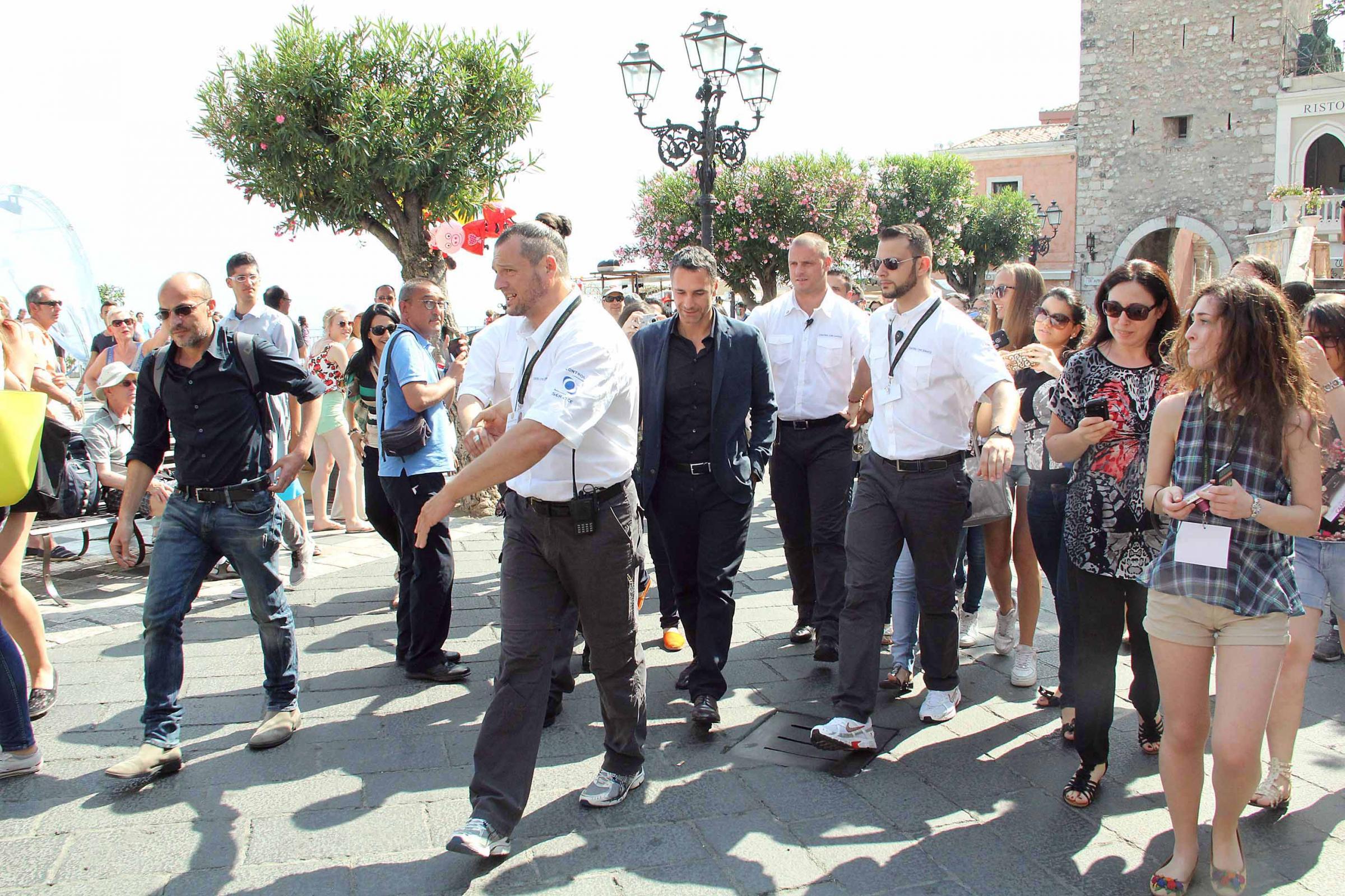 Foto Claudio Bernardi/LaPresse Taormina, 14 giugno 2014 Raoul Bova ha camminato per le vie della cittadina siciliana, è stato assediato dalle fans. L'attore si è sottoposto con pazienza a tutte le ragazze che gli hanno chiesto di posare con loro, fino al momento della sua partenza insieme alla fidanzata Rocio, che lo ha accompagnato qui a Taormina.